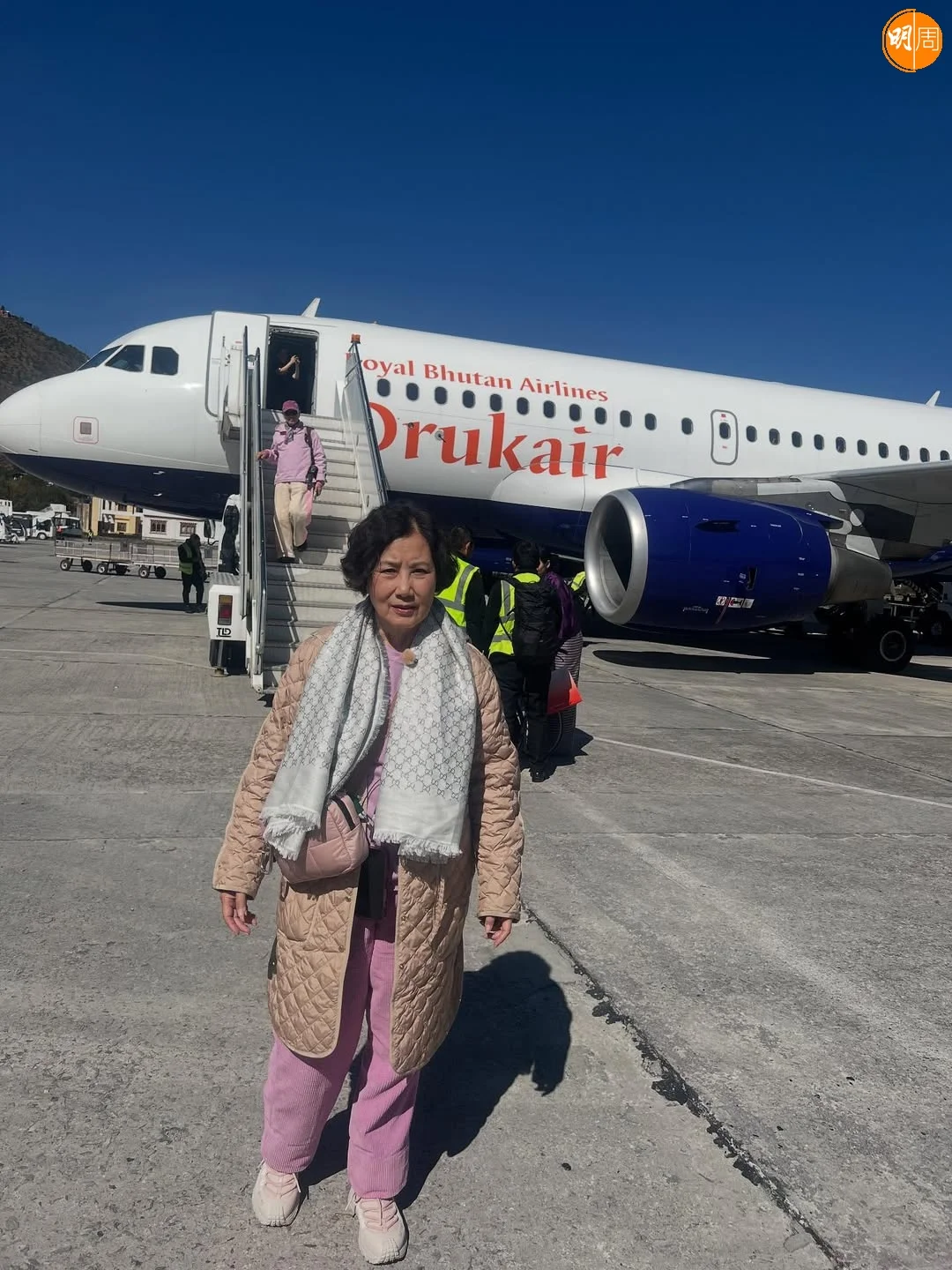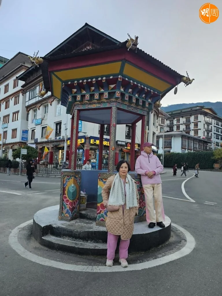 已抵達不丹開始拍攝的阿姐,今日(12日)凌晨及下午在ig貼相發文,表示第一天到不丹天氣很好,中午陽光充沛,但不熱,留言:「在機上聽到空姐介紹今天是不丹第四任皇帝的70歲生日,全國放假三天,所以全國上下一片熱鬧,七彩繽紛的經幡隨街飄陽(揚),到處排上太上皇的照片,印度總理穆迪也特來參加壽宴。」、「不丹唯一交通指揮亭。他們不用交通燈的。」