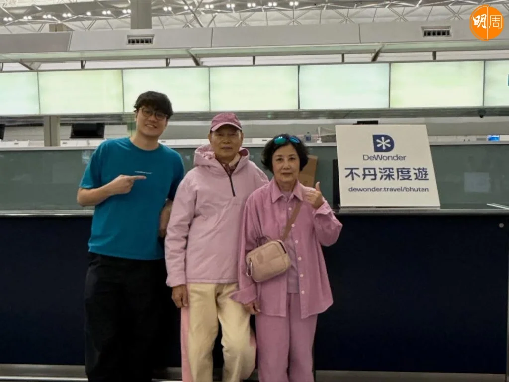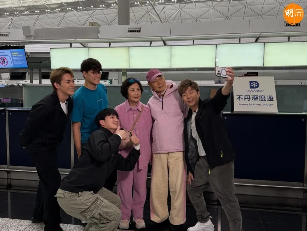 汪明荃(阿姐)與羅家英(家英哥)前晚(10日)身穿粉紅色情侶裝,現身機場出發到不丹拍攝全新綜藝節目《帶阿姐看世界》。為熱烈慶祝阿姐出發前往最後一站—不丹,製作組找來三名之前陪過阿姐看世界的的三大乖孫—周嘉洛、阮浩棕和周奕瑋到機場送機,為阿姐送上開心驚喜。