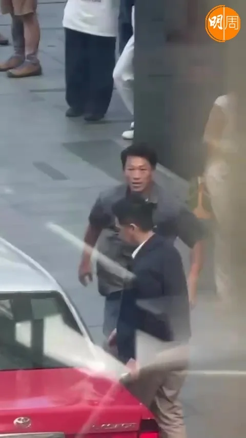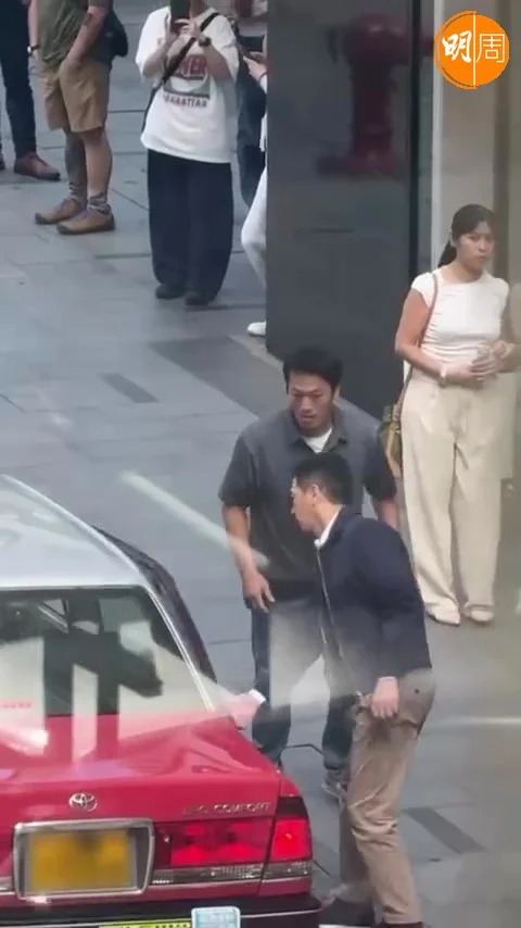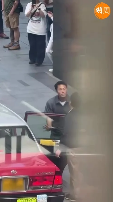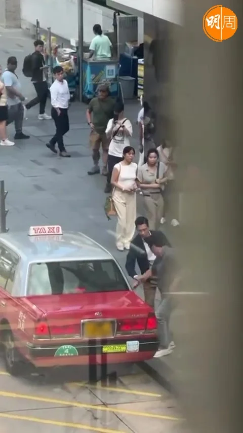 家輝在中環同一男士爭的士。