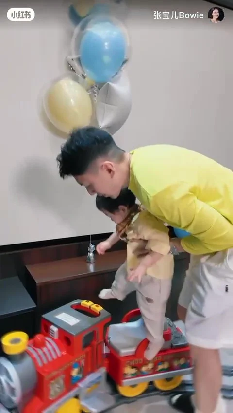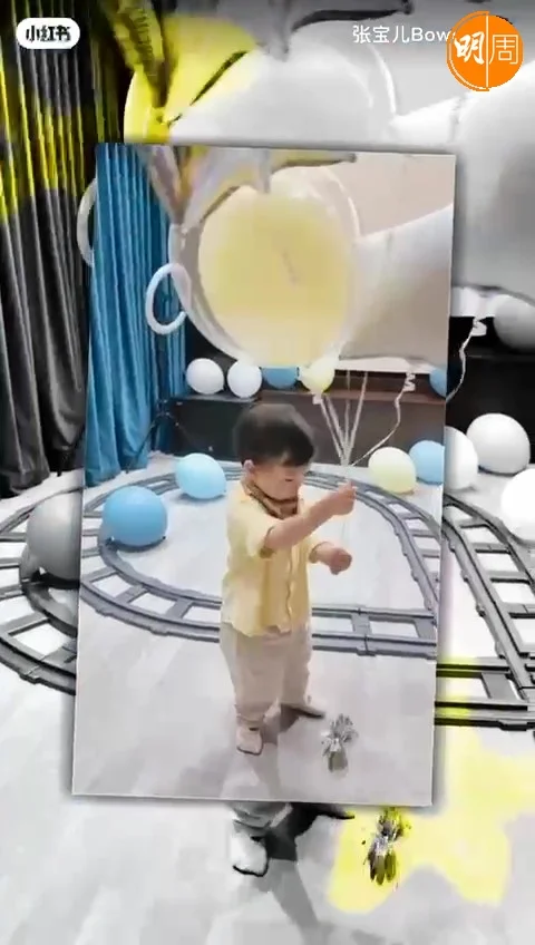 至於主角壽星仔袁咕碌,走入放滿汽球佈置的大房間,地上鋪有火車路軌,袁咕碌坐着紅色火車氹氹轉好開心,還收到多盒車車禮物,連嫲嫲都出埋鏡,一手捧着Lego蛋糕,一手拿着消防車送給乖孫。然後由媽咪和爹哋伴着他在2個生日蛋糕前,聽着生日歌拍手及吹蠟蠋,幸福滿滿沒有因為細佬出世分薄了全家人給他的愛。