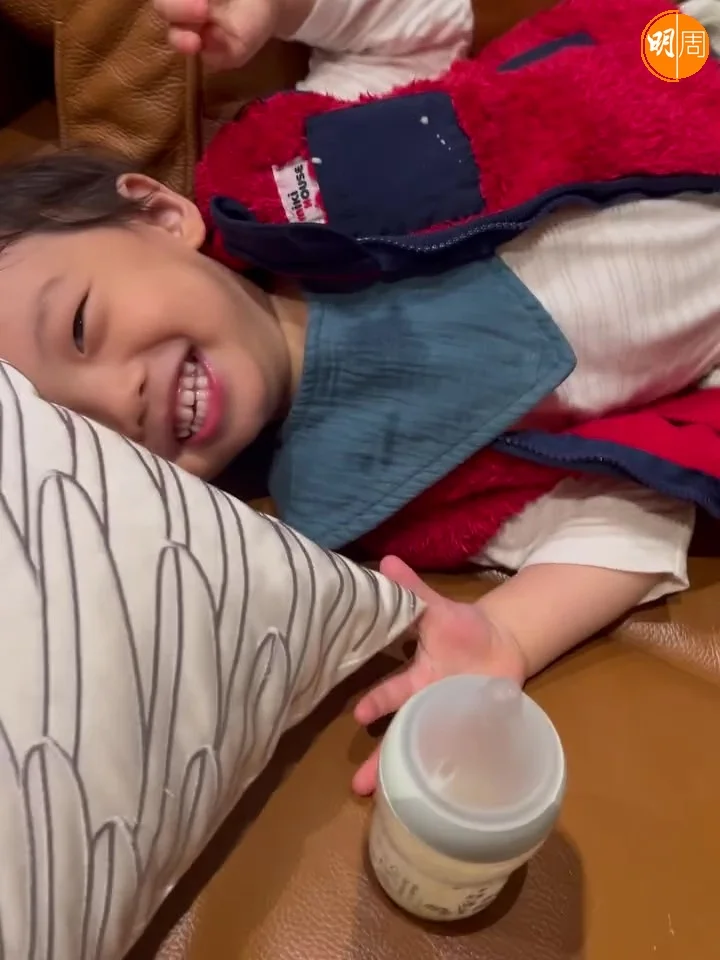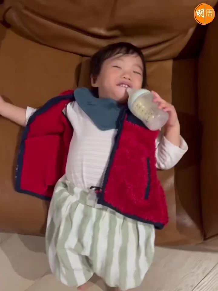 寶兒在留言大爆沒拍片段的後續,留言:「誰知原來他只是口說好好味,喝幾口還是還給媽媽⋯⋯鏡頭拍不到,他還把奶嘴塞到媽媽嘴裡。媽媽以為他吃晚飯吃飽了不吃奶,但姐姐一給他奶粉沖的奶,他就一口氣全喝了~」。