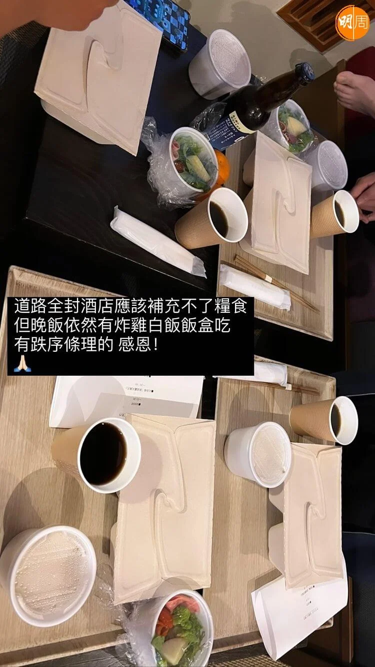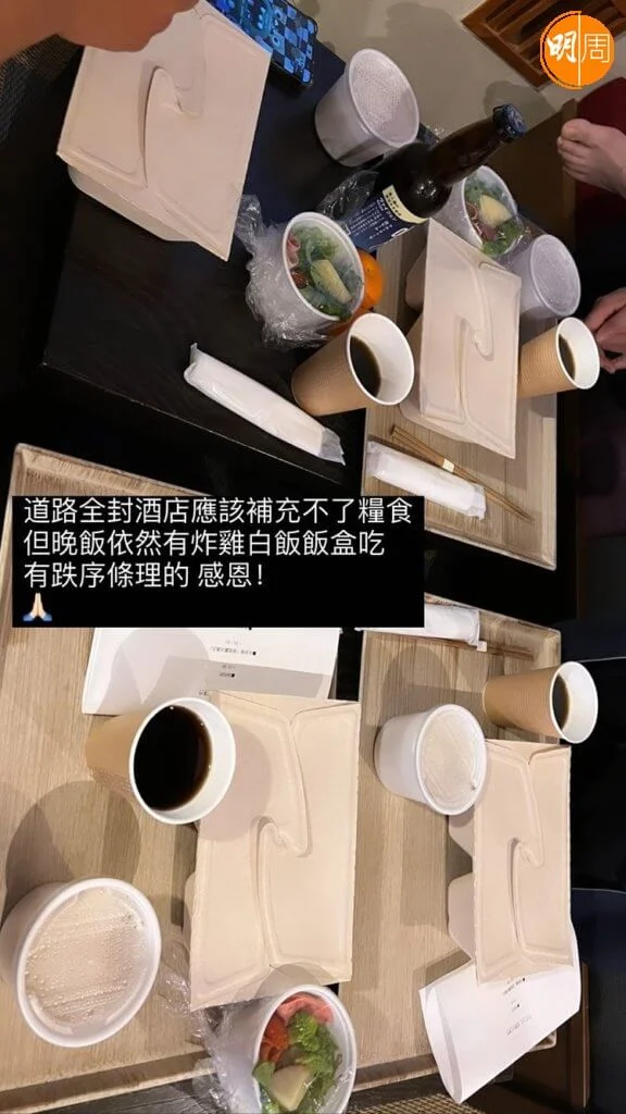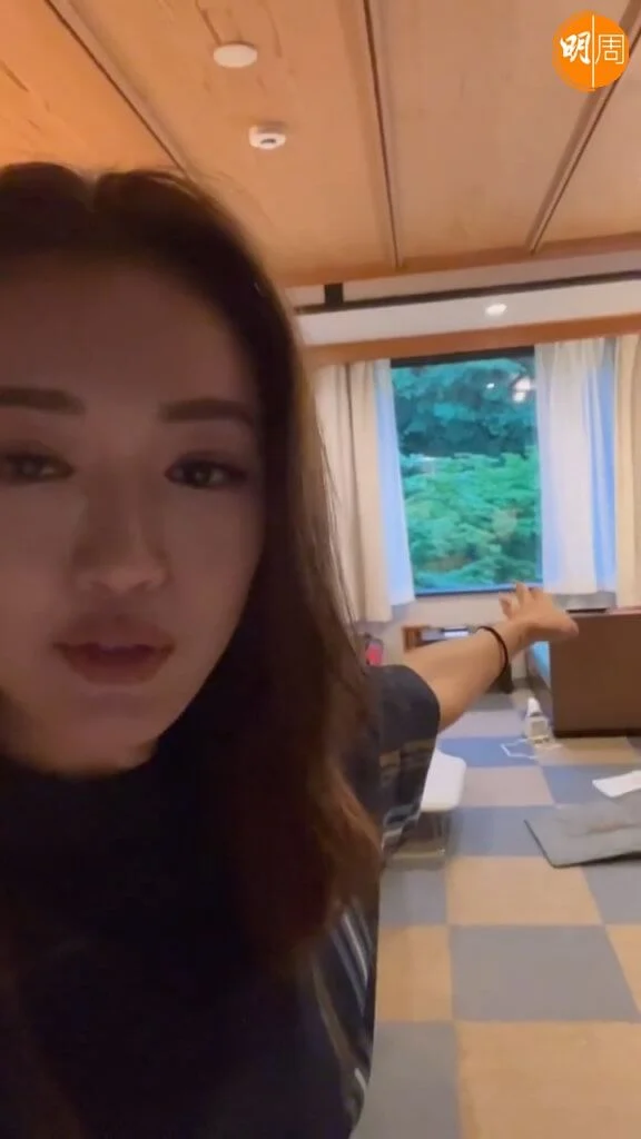 她在社交網拍片報平安,站在窗邊直擊室外洪流情況,片段中她表示酒店1樓的餐廳已取消提供早餐,並要求1樓及2樓的人離開樓層暫避。幸好她的房間在3樓,所以很安全,請大家不用擔心,但由於水流很急,因此戶外的拍攝工作要取消。她更在社交網寫下︰「今早收到危險避難警報是4/5級別的山泥傾瀉、洪水和低窪地區氾濫情報,所以頭都未整就先拍這條片留底。感恩酒店安排房間讓我們多待一晚,也感恩酒店仍有食物,希望明早路會安全開通,祈求雨快點遠去,大家安全平安。」