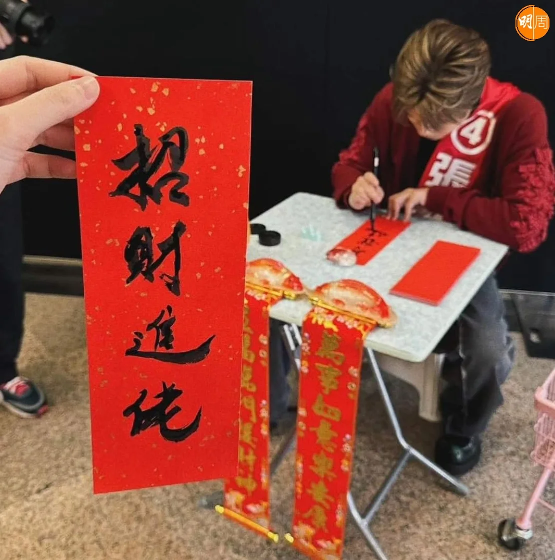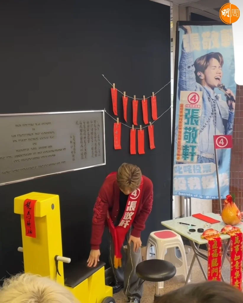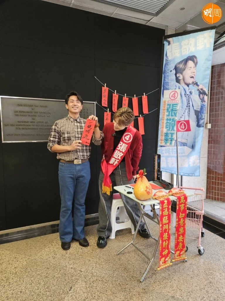張敬軒今年元旦在《叱咤樂壇流行榜頒獎典禮2023》上奪得「我最喜愛的男歌手」。他為答謝一眾有份投票的樂迷,日前正式展開謝票活動。軒仔第一站去到商業電台,接受《早霸王》節目訪問後便即席揮毫,寫揮春送給主持森美、小儀及梁嘉琪。除了「早霸王」揮春,他更寫了一道「桃花滿門 愛人狂來」符,十分搞笑。軒仔隨後移師到商台地下大堂,親自Set枱櫈「開檔」寫揮春,吸引大批商台員工排隊,人龍由正門排到停車場,十分墟冚﹗