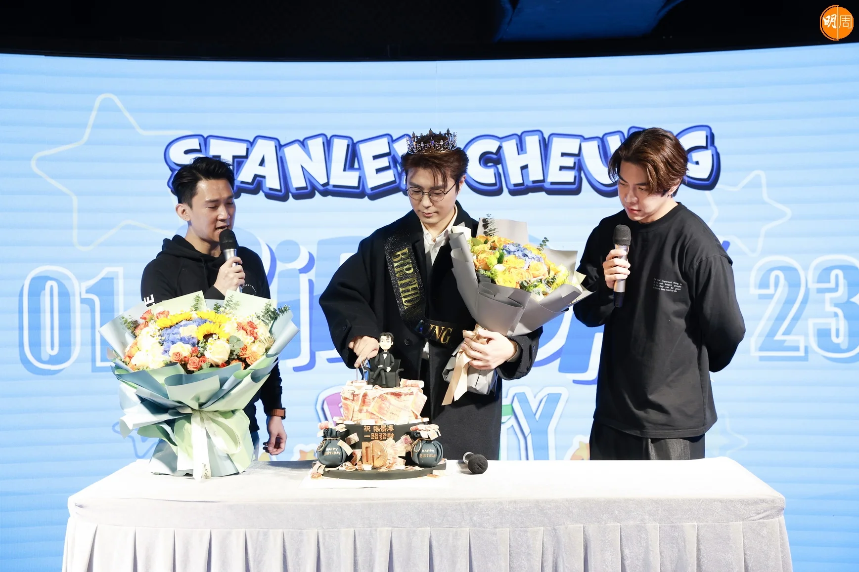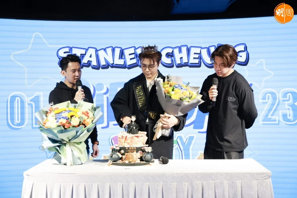 原來今次是張景淳入行以來首次辦生日會,可惜昨日他患上重感冒,聲沙沙帶病慶祝。好兄弟羅天宇,以及長居深圳的李興華特別回來給他驚喜,為了不讓他發現,二人推蛋糕出來時把帽子壓得很低,令張景淳以為是場地工作人員,竟然沒有被發現,之後天宇和興華將行動升級為他戴皇冠及綵帶,面對突如其來的「親密」行為嚇得景淳連忙問是怎麼回事,才發現原來是好兄弟,相當驚喜及搞笑。