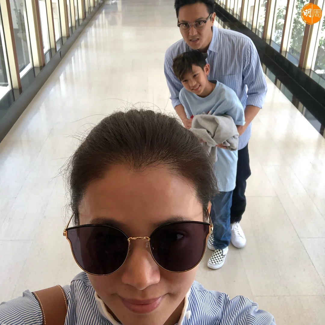 獲讚「顏值爆錶三口之家」、「一家子都是靚靚」、「三雙大眼睛出門」外,亦有網民留意到Chilam那剛睡醒的頭髮,出門都不梳不造型。