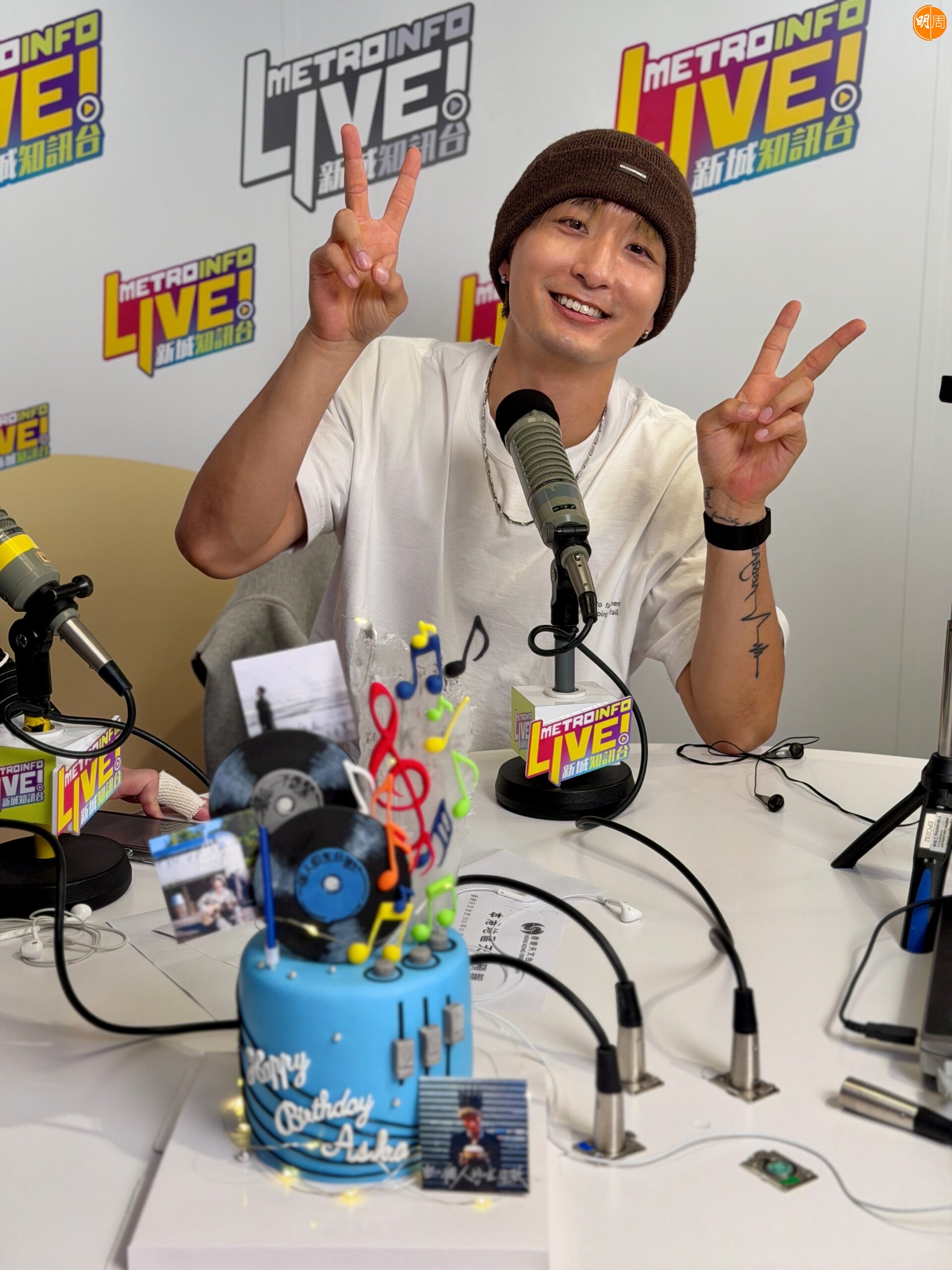 張馳豪(Aska)今日(5日)31歲生日,昨晚11時30分現身新城知訊台,接受范振鋒、Michael Beat主持的《「鋒」繼續吹》直播訪問。原以為只是宣傳新歌的行程,踏入5日零時,好友潘靜文與林智樂靜靜走入直播室,捧上生日蛋糕,與兩位主持及唱片公司同事一起倒數,為Aska迎接生日,突如其來的驚喜令壽星仔抱頭大叫:「What?」
