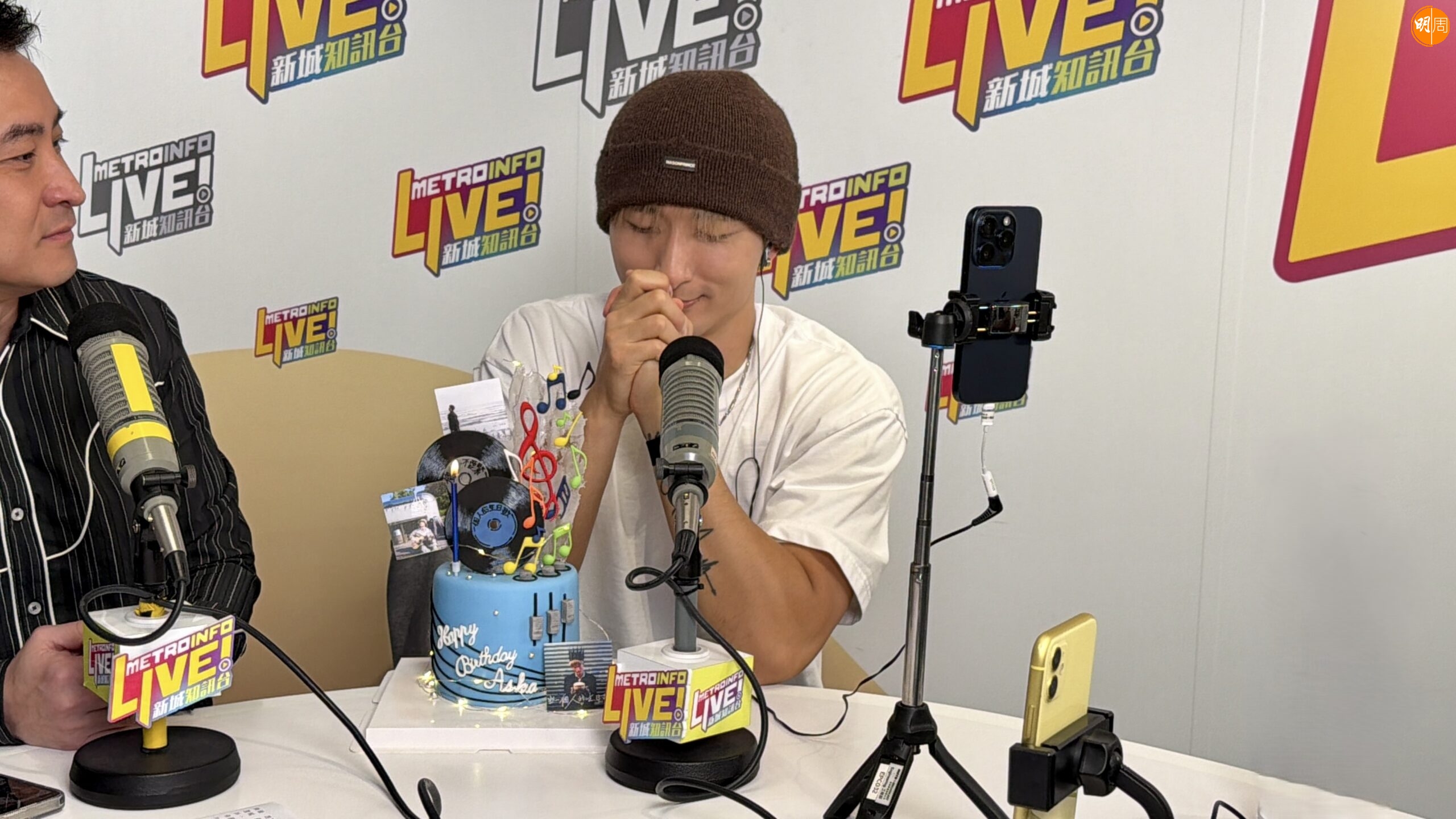 原本以為只是宣傳新歌《一個人的生日歌》,結果卻變成「一班人的生日歌」,Aska度過久違的熱鬧生日,感動得掩面「扮喊」。談到生日願望,壽星仔笑說:「講咗出嚟唔靈驗,祝大家馬年吉祥啦!」潘靜文送上窩心祝福:「身體健康啦!佢成日有小毛病,好大隻但身子弱,最緊要開心。」林智樂亦祝願大家工作愈來愈多,更希望三人能再次一起出埠工作。