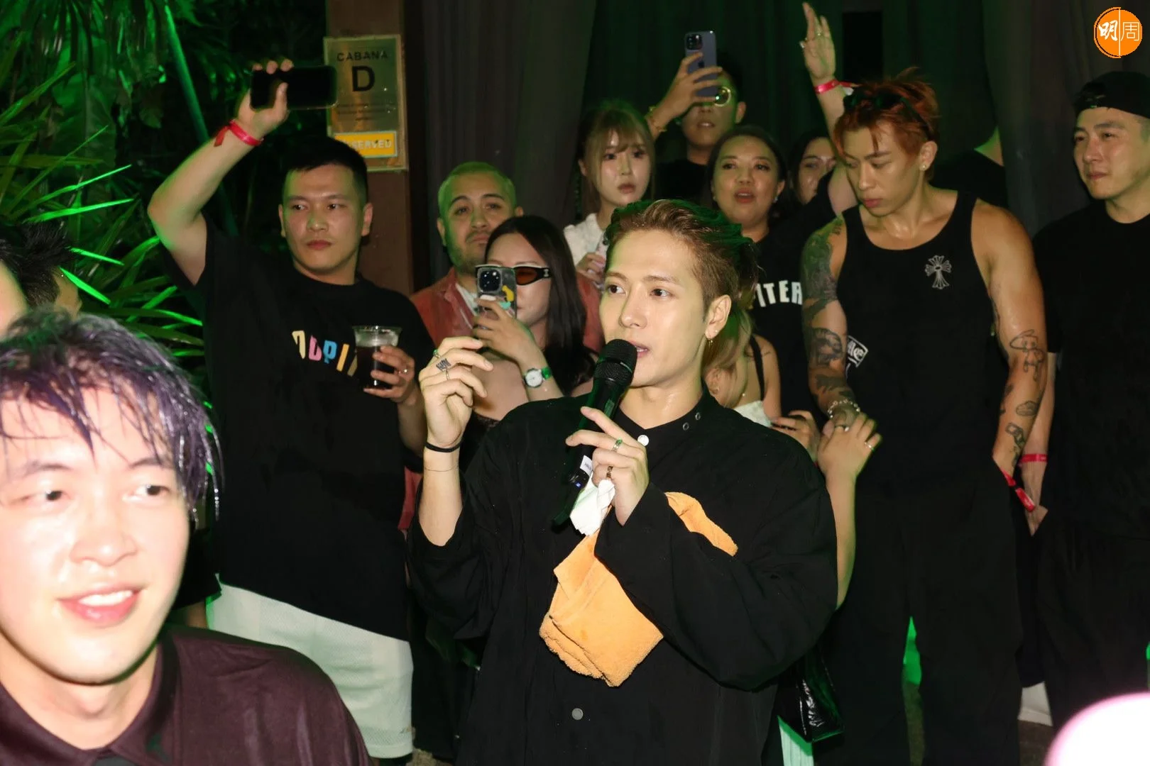 Jackson的好友日本藝術家VERDY、Tyson Yoshi和未婚妻Christy都有出席派對,昨晚11時左右,眾人進入會場時,Jackson即場與嘉賓大玩drinking challenge,而今次的派對主題為pool side party,Jackson和Tyson便成為「攻擊」目標,被現場數十支水槍圍攻,未落水已濕透,現場派對氣氛高漲。