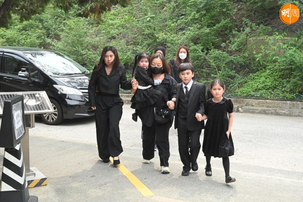 李泳漢一家一早到靈堂打點,而施明前夫李家鼎和細仔李泳豪亦一早出現,兩父子均戴上口罩,準備為施明出殯的事宜,而李泳豪太太林妤謙(Agnes)昨天被拒入靈堂拜祭,今天無奈缺席。