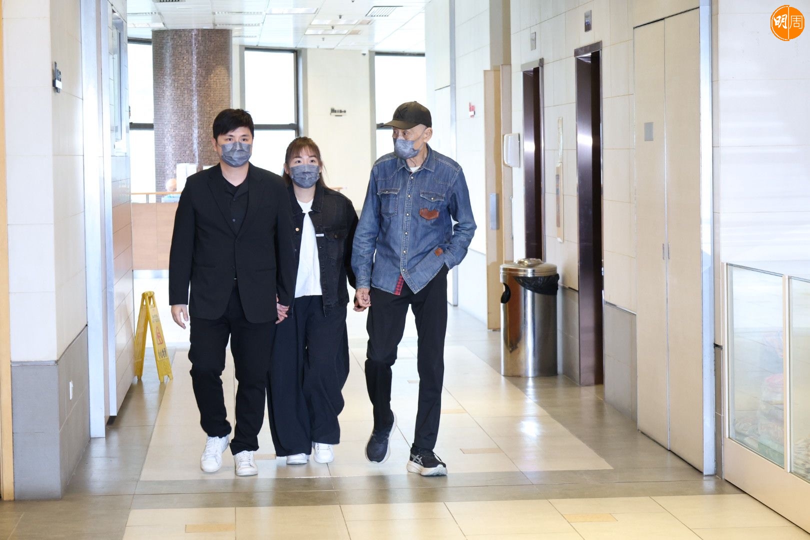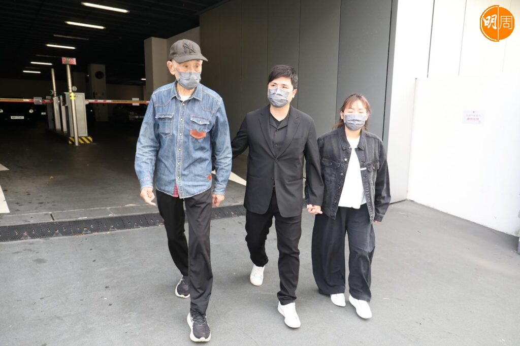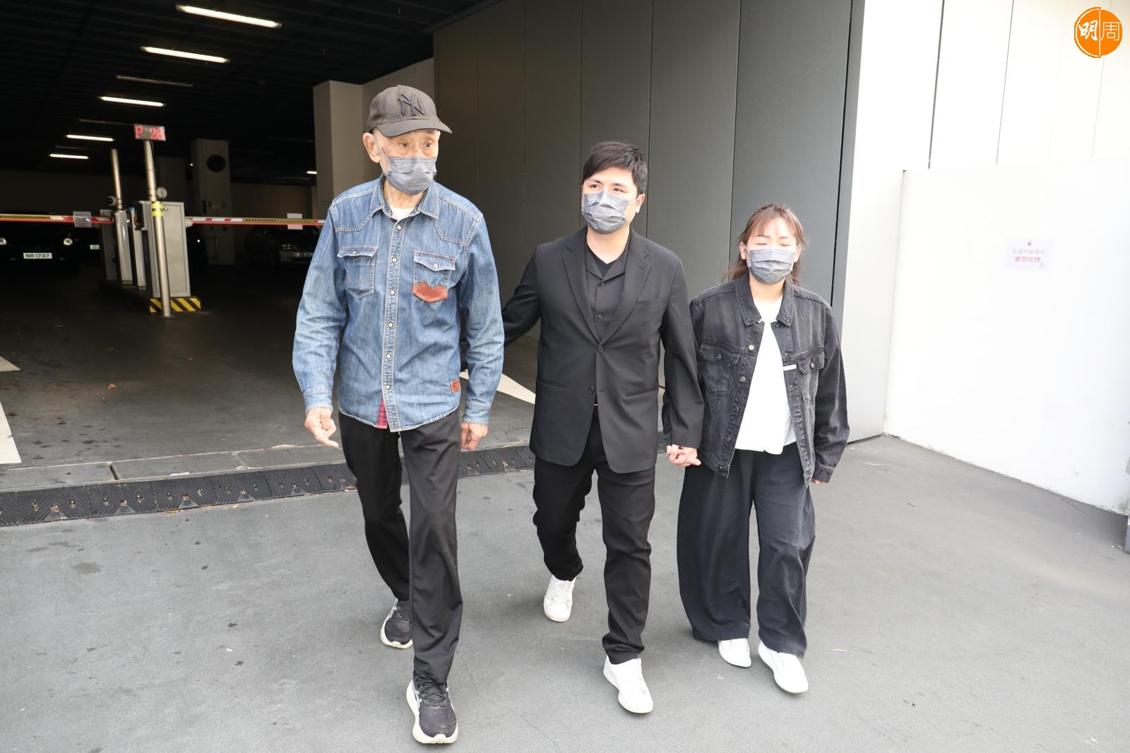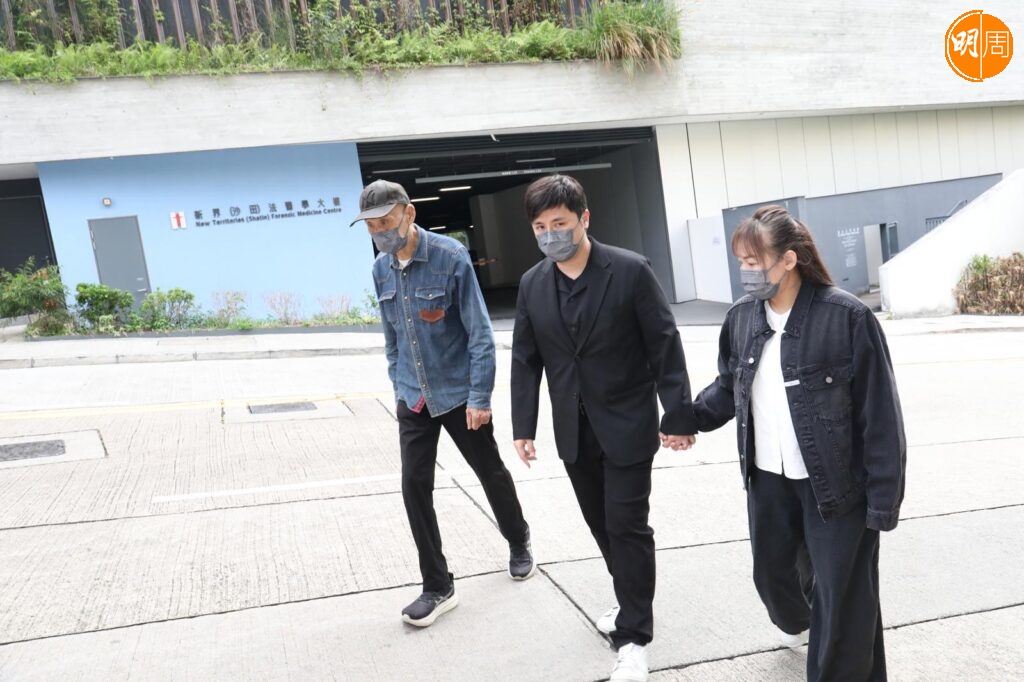 鼎爺與細孖泳豪、細新抱近四時到達靈堂,泳豪手牽太太與爸爸準備步入靈堂時,門口四名工作人員擋住,細聲與泳豪講咗幾句後,泳豪示意太太企門外,自己與爸爸步入靈堂。