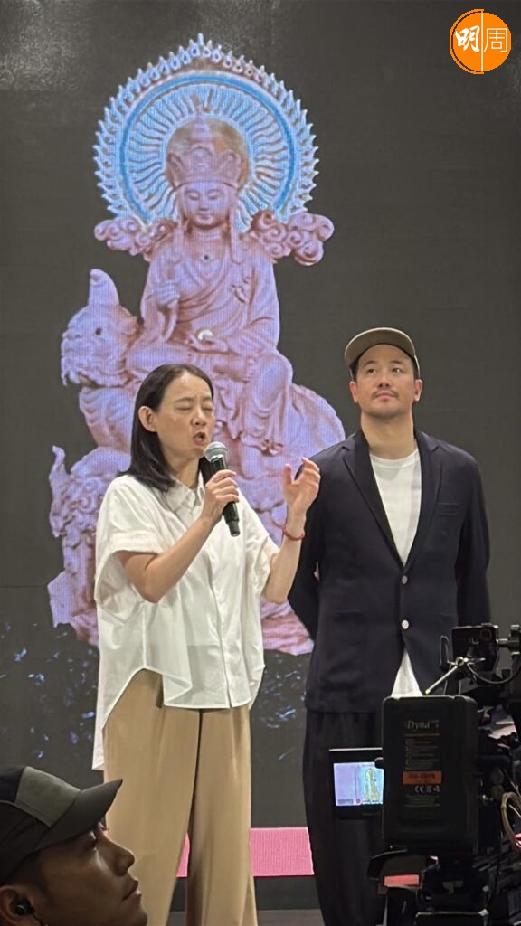 邱淑貞篤信密宗多年,今年罕有出席素宴。照片所見,向來保養得宜的邱淑貞,今次未有刻意打扮,雖然穿上西裝大褸,但面容與身段明顯消瘦,看來有點憔悴,但為了慈善,她都有上台呼籲拍賣聖物。另外出席的嘉賓還包括有張智霖與袁詠儀、葉子楣、張耀揚、林國斌等。