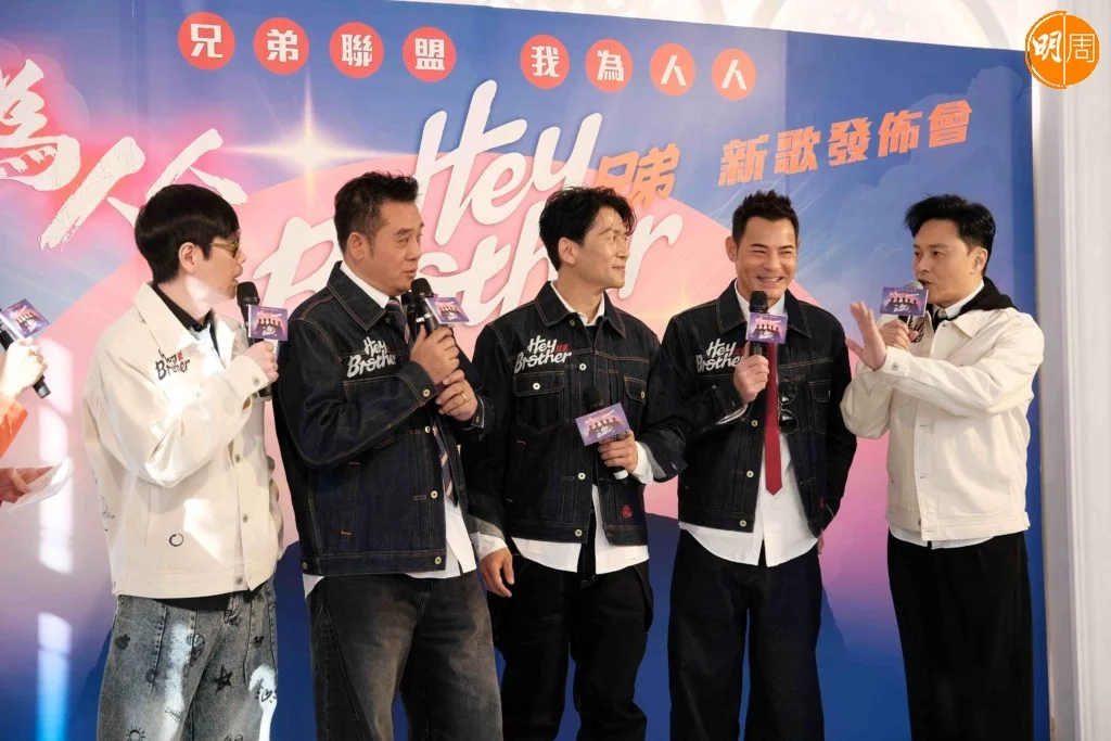 跨越多個世代演藝背景的HEY BROTHER,憑着對音樂的熱誠和對舞台的憧憬而集結起來,他們在台上解釋成團原因,「多年來我哋陪着大家成長,惟獨未試過組成男團,希望趁後生試下。」談到新歌《我為人人》的意思,唐文龍表示:「生活上,好多人覺得我哋為人,但誰為我?希望大家能調轉思維,要先為人,亦唔好忘記初心。」這次新歌成功面世,麥長青直言要多謝李思捷徒弟,「拍MV時佢哋好幫手,還要多謝作曲、填詞,寫到大家心聲,又有啲哲學意思。」