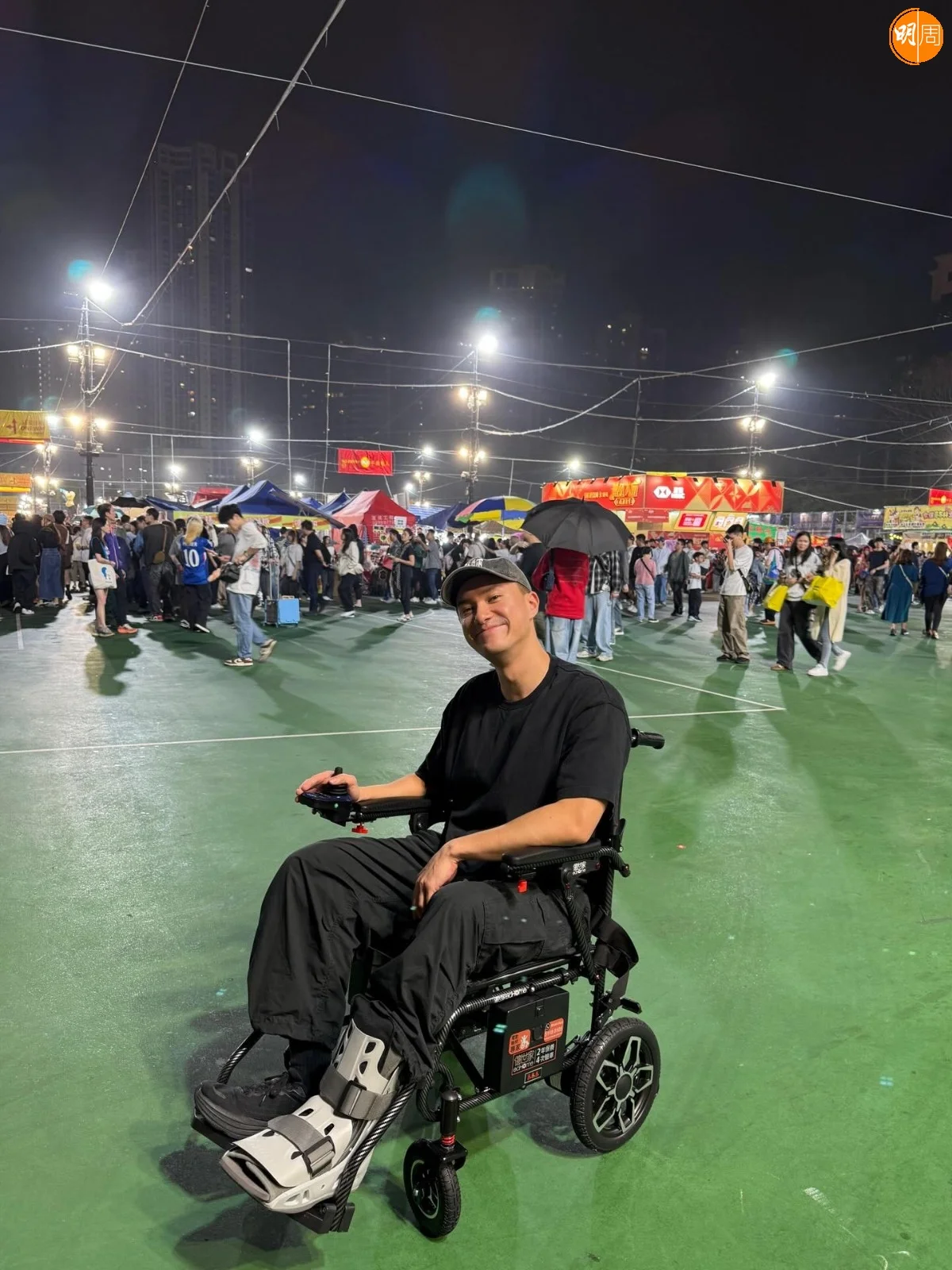 朱敏瀚(朱仔)早前因踢波斷了兩條韌帶,農曆新年前入院做手術植入新型好幼的鋼釘,但傷口仍然感到痛楚。朱仔昨日(19日)在社交網分享日前去維園行年宵花市,更以輪椅代步,當天朱仔身穿黑色T-shirt配Cap帽示人,他的左腳則穿上腳踝支架以保護及固定傷處,即使飽受腳傷依然露出笑容拍照,無損心情,「我年頭踢波時整親左腳腳踝,斷咗兩條韌帶,之後2月頭做咗個小手術,預計三月先可以行得,預計三月開始都做返嘢,呢段期間左腳唔可以掂地行,不過因為唔想錯過每年新年行花市,所以就搵張輪椅贊助用一下,不過平時出入都係用返拐杖,因為都已經習慣咗,雖然目前都係康復階段,但我又照樣有同班兄弟去做gym鍛鍊一下。」他表示經過今次受傷,令他對行動不便人士有更深的體會,「因為開始用拐杖的時候,先發現原來香港街道好多地方都係凹凸不平,對用拐杖嘅朋友都好唔方便,所以如果行動不便嘅人士行得慢,希望大家都俾啲耐性,同埋對日常生活真係好唔方便,所以可以嘅話都對身邊唔舒服嘅朋友多啲關心。」