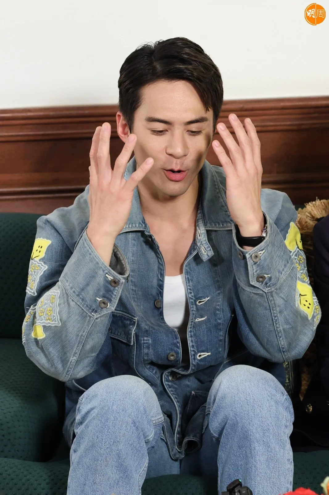 宣萱笑指古老闆是撓住手站在攝影機旁邊望到實,令朱仔很大壓力:「他愈想講愈講不到,好緊張,很大壓力,我一推開佢(古老闆)就做到。」
