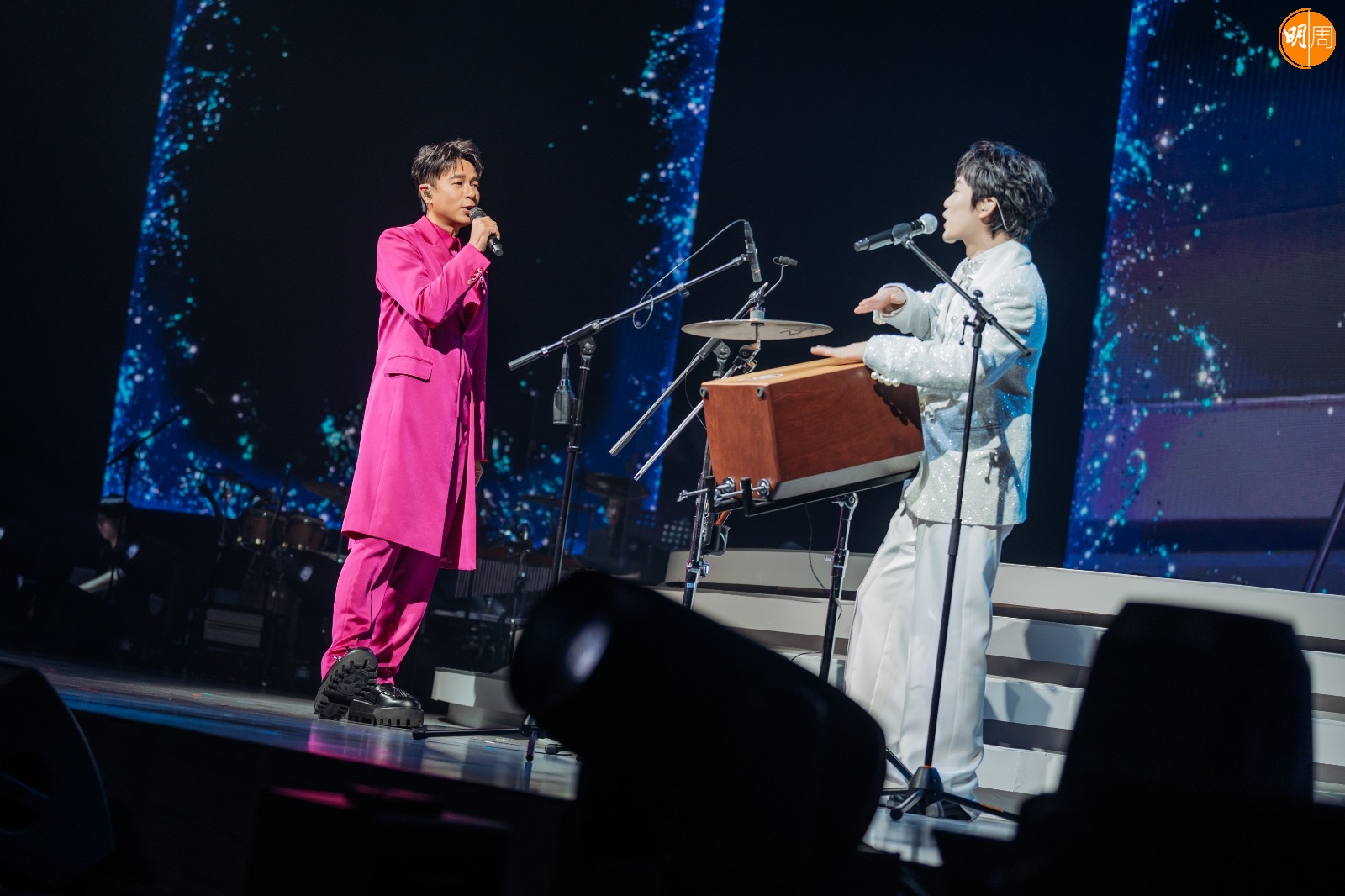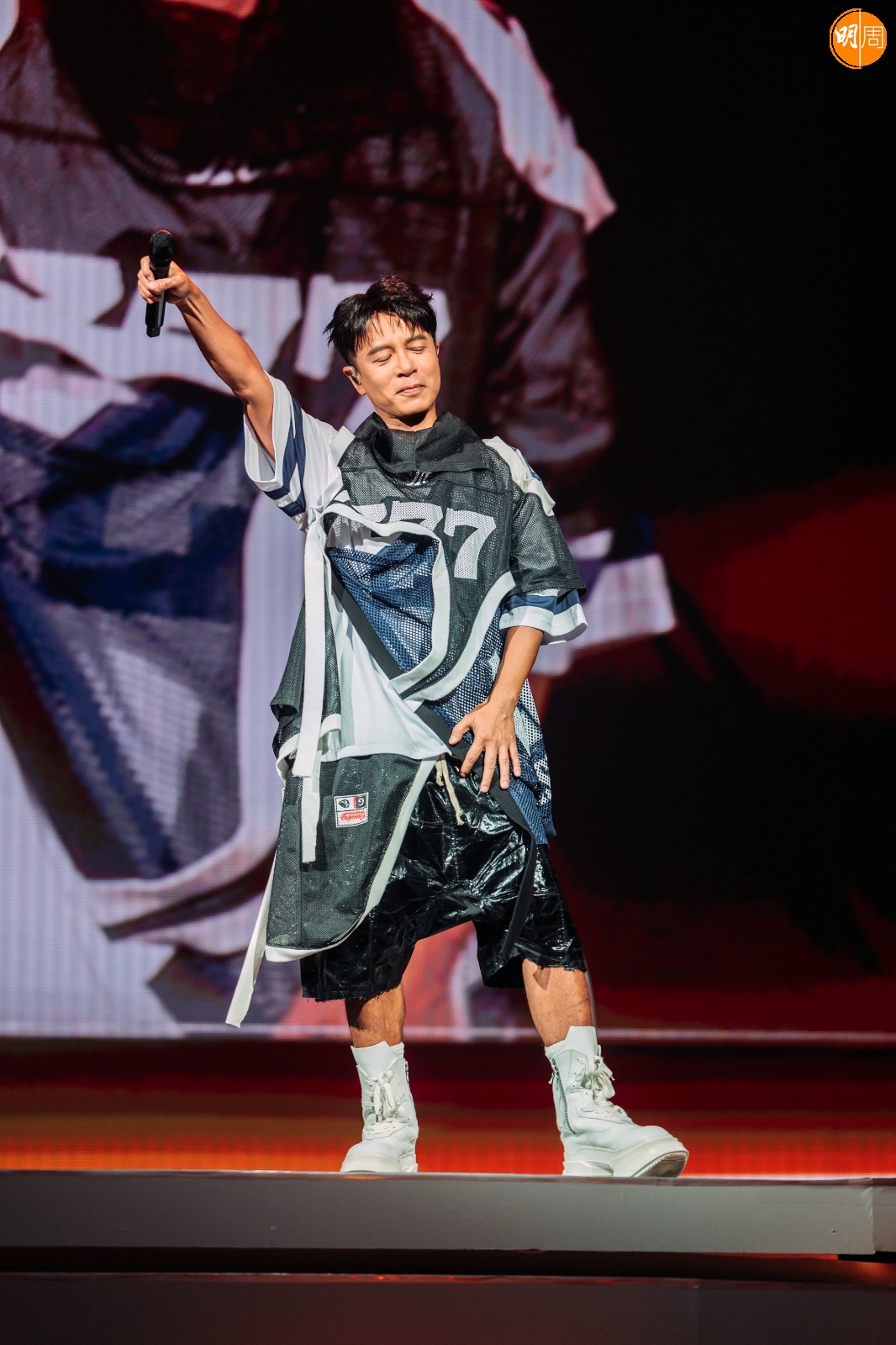 一開場克勤已經「不留手」,以「升空」姿態由舞台直飛上半空登場,視覺效果震撼到全場嘩嘩聲。觀眾除了不停歡呼,尖叫聲更此起彼落,成功炒熱氣氛。今次克勤更特別「升級加碼」,音樂編排落足心機,不單止請來澳門合唱團合作,更邀得香港管弦樂團首席王敬坐鎮,整個演出即時升呢,而多首經典歌重新編排後氣勢磅礡,配合現場樂隊演繹,感染力強,觀眾不停揮動熒光棒及電話燈海作應援,場面壯觀。