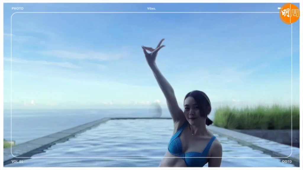 李蘊今日在社交網上載「自編自導自演自拍自剪」的短片,片段中李蘊穿上彩藍三點式獨自面對無敵海景的酒店泳池開心玩水,搞笑留言:「幾十歲人,好難得(三點式)㗎,一次咁多」;G.E.M.則留言大讚:「Beauty and the Sea」。