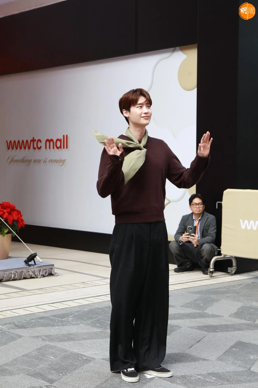 李鍾碩先於店外的巨型廣告版及聖誕樹主題打卡點親切留影,並頻頻向粉絲揮手及送上「心心」,現場氣氛熱烈。其後,他進入店內參觀,更特意在照片牆上簽名,並以寫下「你好!我們一直幸福下去吧!」向粉絲傳遞暖意。