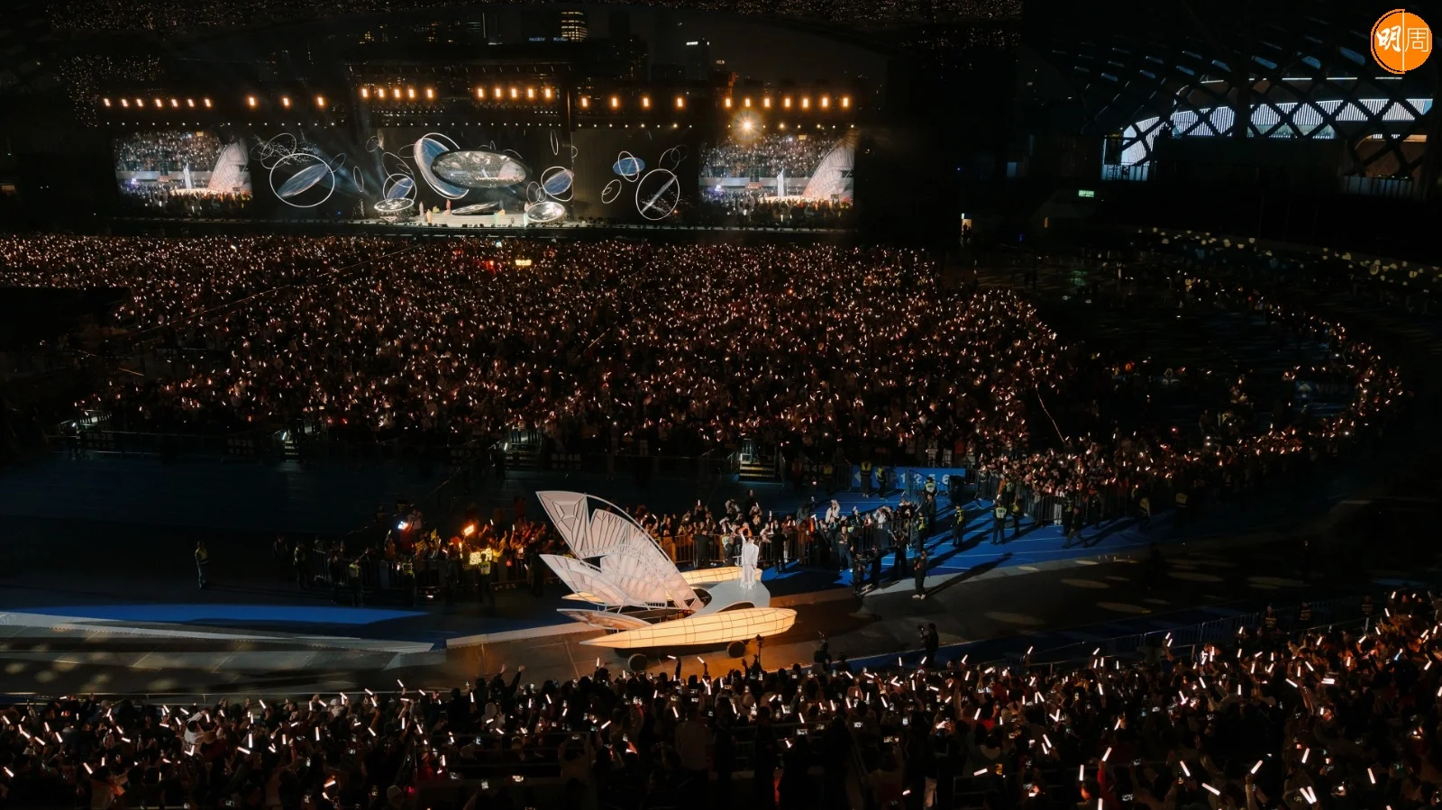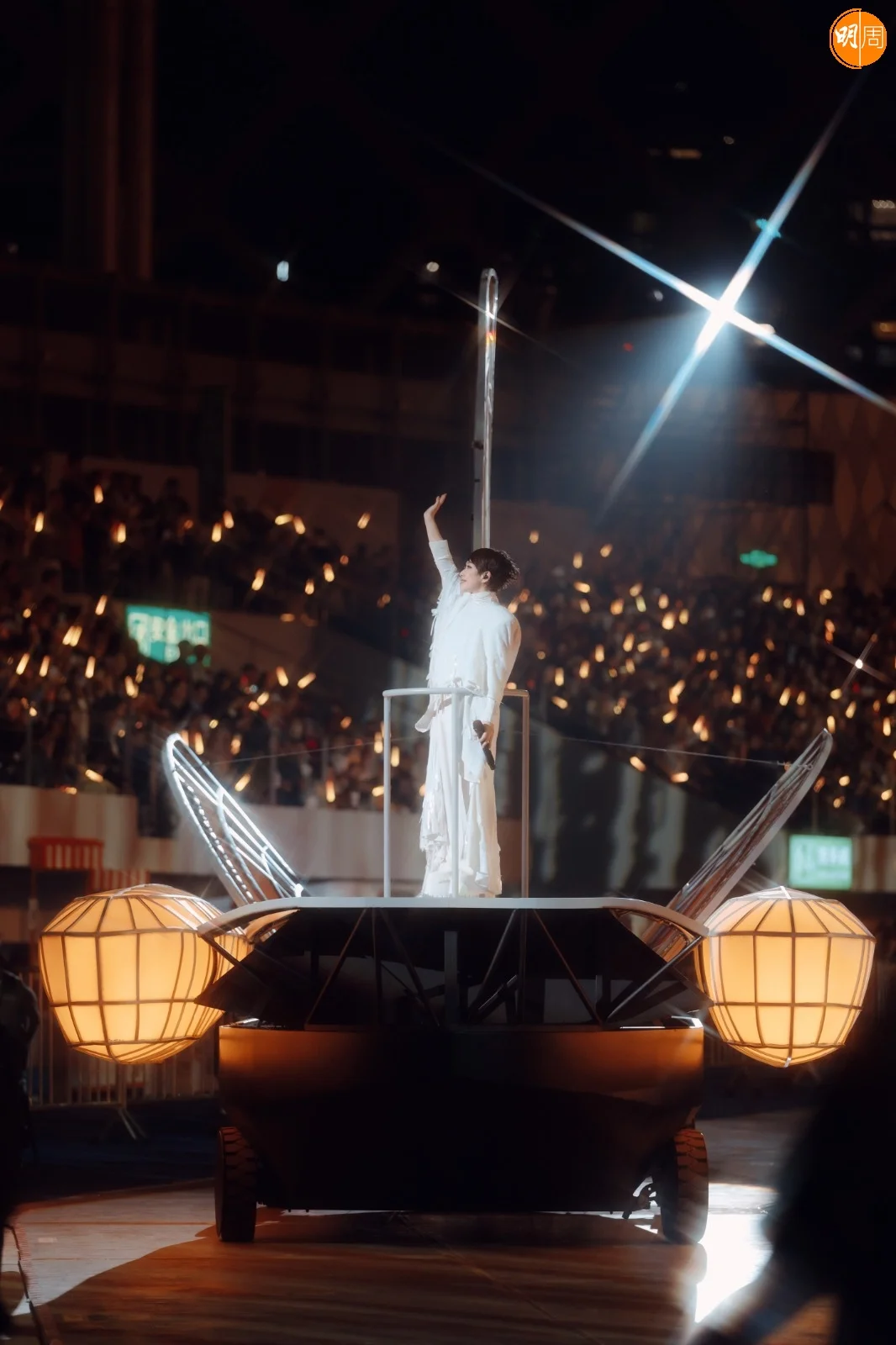 今次深圳收官站,特別增設了「花車環場」環節,這也是此次巡演中首次出現的特別設計。當《纖維》的餘音還未散盡,《遠走高飛》的前奏響起,林憶蓮乘坐緩緩行進的「飛船」花車,沿內場航道航行。當她在船上接連唱起《詞不達意》和《至少還有你》,她不再只是舞台中央的焦點,而是以最近的距離,所經之處,旋律與目光交錯,成為最限定的記憶。
