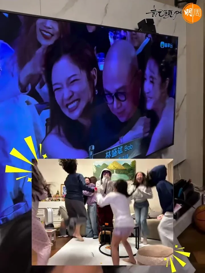 原來這一刻興奮的除了台上的Bob,在家裏看電視見證Bob得獎的太太和4位子女及一眾親友,同樣興奮得大跳大嗌。Bob嫂Pearl在社交網上載片段,原本仍在開心爆喊的4子女,當看到爸爸整爛獎時,隨即破涕為笑。
