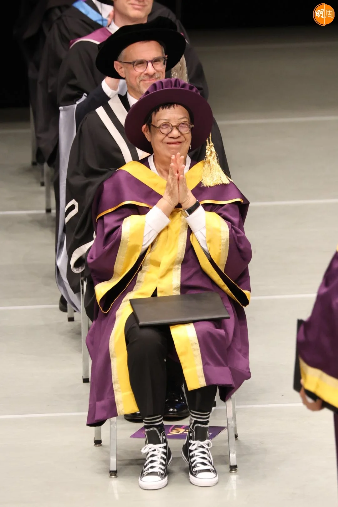 一個月內兩度獲頒榮譽博士的梁朝偉心情大好,不時微笑,並獲老婆劉嘉玲撐場。他受訪時表示心情像派成績表,稍後會和家人食飯慶祝。被問到會否教班分享經驗?偉仔說︰「我樂意分享經驗,但不太會教人。我現在拍戲也像讀書,每演一個角色也要讀很多書。」