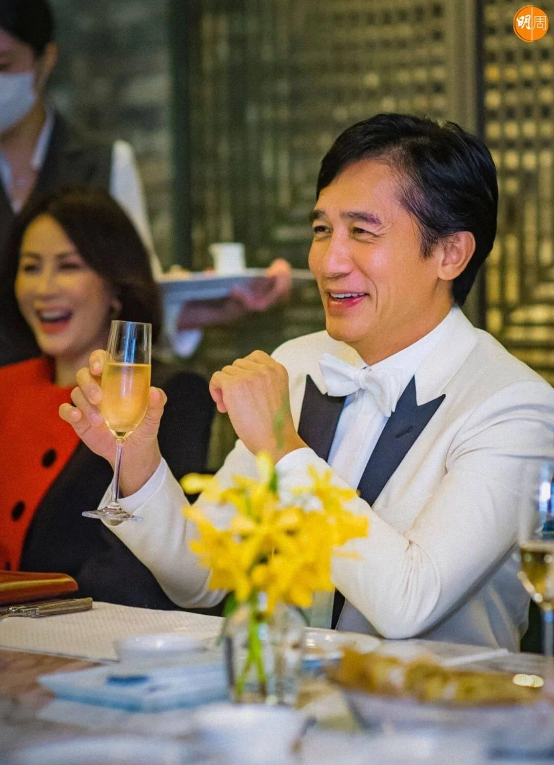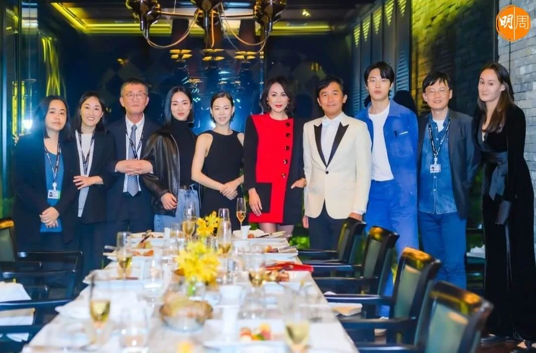 晚宴上,偉仔與嘉玲各自跟韓星柳俊烈、全汝彬、韓藝璃合照,其中自小看港片長大,來港時受訪曾表示很想和梁朝偉合作的柳俊烈,在晚宴上跟偉仔說個不停,非常開心。