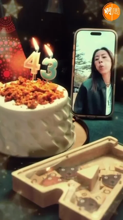 至於壽星女則上載搞笑短片,原本滿心歡喜看到蛋糕插有「34」的蠟燭,笑言「34 Again」,但當蠟燭被調整回到「43」後,她即一臉不爽,再回頭把蠟燭吹熄。