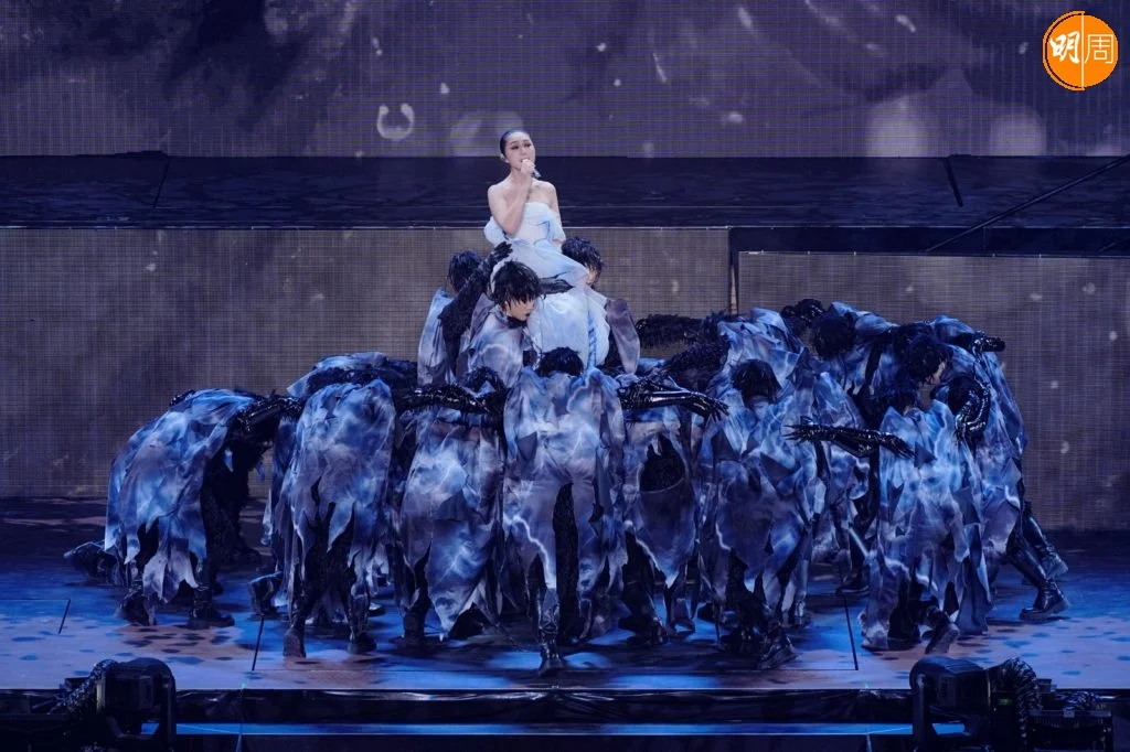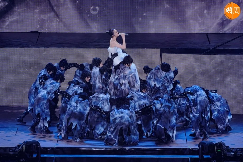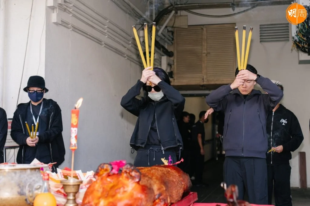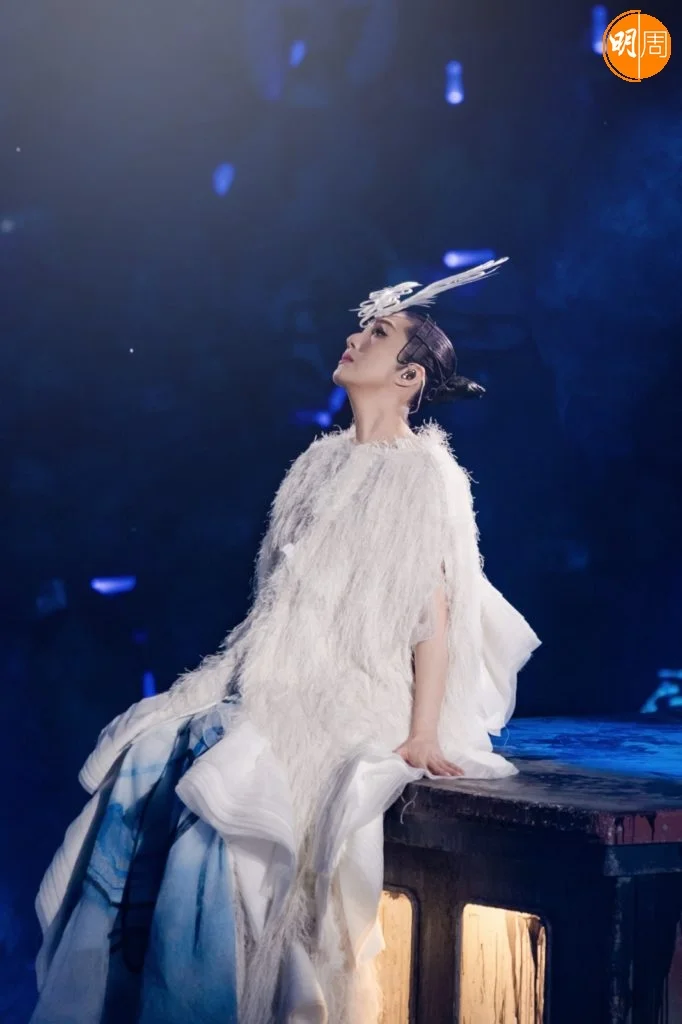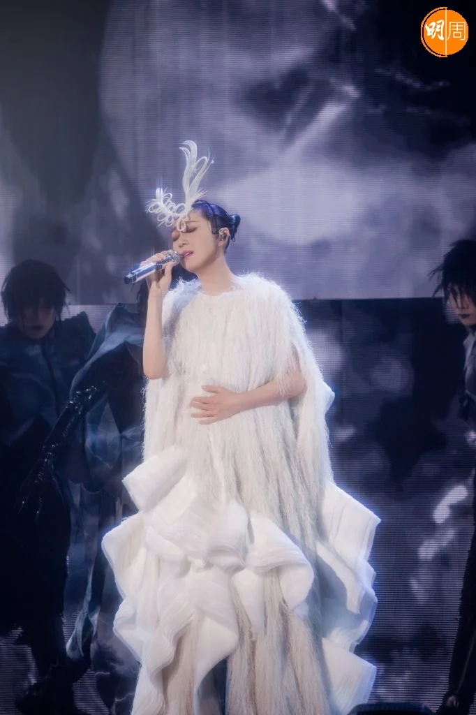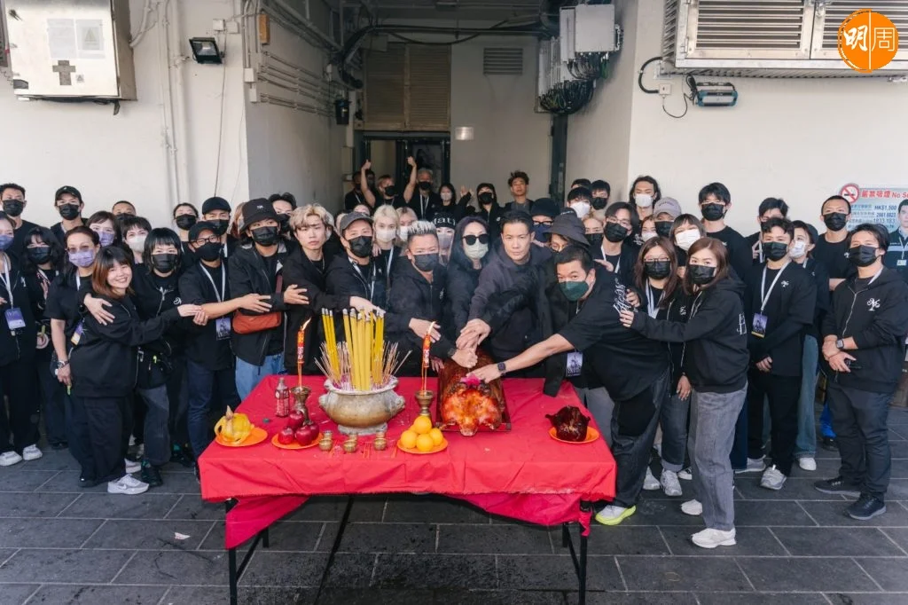 下午的拜神儀式上,全體工作人員自發穿上黑色服裝,以樸素姿態呼應全港連日來的沉痛心情。這份尊重延續至舞台——樂手們一致換上黑色演出服;千嬅的演出造型也連夜調整,捨棄鮮艷,回歸沉靜。其中一件原為紅色的戰袍,經團隊通宵改製,化作黑白金三色,在燈光下低調閃耀。