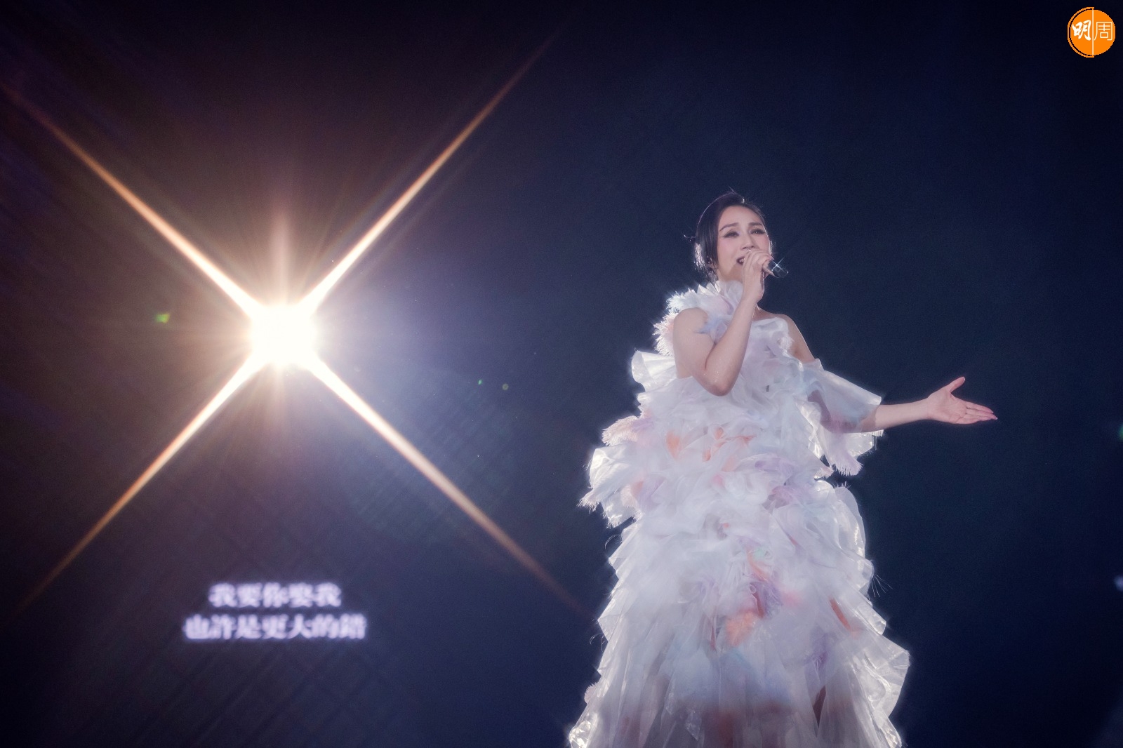 千嬅在台上感性坦言:「現在生日,我心中會有兩個人特別思念,第一個想起的人當然是自己媽媽,另一個是我的孩子。一個生我,一個我生,做了媽媽才真正感受到生孩子的苦,感謝媽媽養育了我五十多年。」她回顧三十年音樂路,從《狼來了》記錄年少的「一腔孤勇」,到《郎來了》學會「人生要被愛,最基礎是要知如何去愛」,感嘆音樂在不同階段記錄了她的生命狀態。