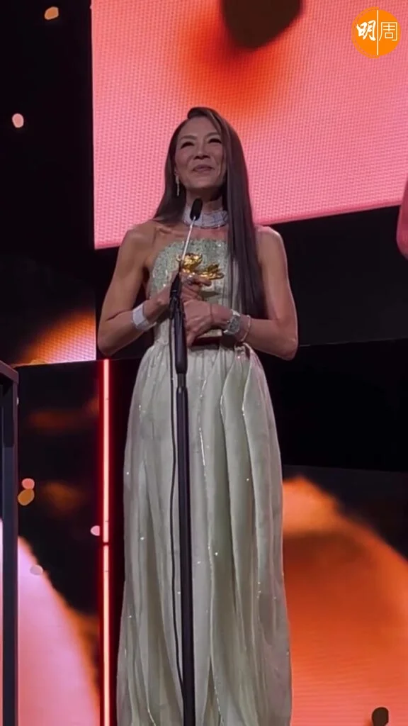 回顧青春歲月時的Michelle直言,沒想過能走得那麼遠,談及亡父時更不禁哽咽流淚。她說︰「我的一部分依然是那個只想讓父母為我驕傲的小女孩。我的父親已不在人世,無法親眼見證這一刻,但我把他銘記於心,他的嚴謹、沉穩,以及凡事值得做,就值得做到最好的信念。如果他今晚能看到我手捧金熊獎,我知道他一定會微笑。」她的說話感動全場起立拍手。
