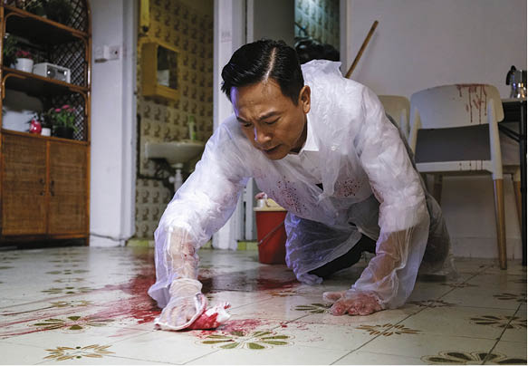 陳國邦在劇中有不少處理屍體的血腥場面,令人不寒而慄。