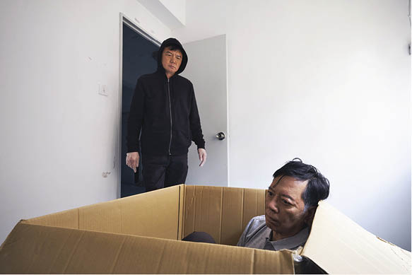 駱應鈞在劇中被指是殺人兇手,在重組紙盒藏屍案情時,神情落寞。