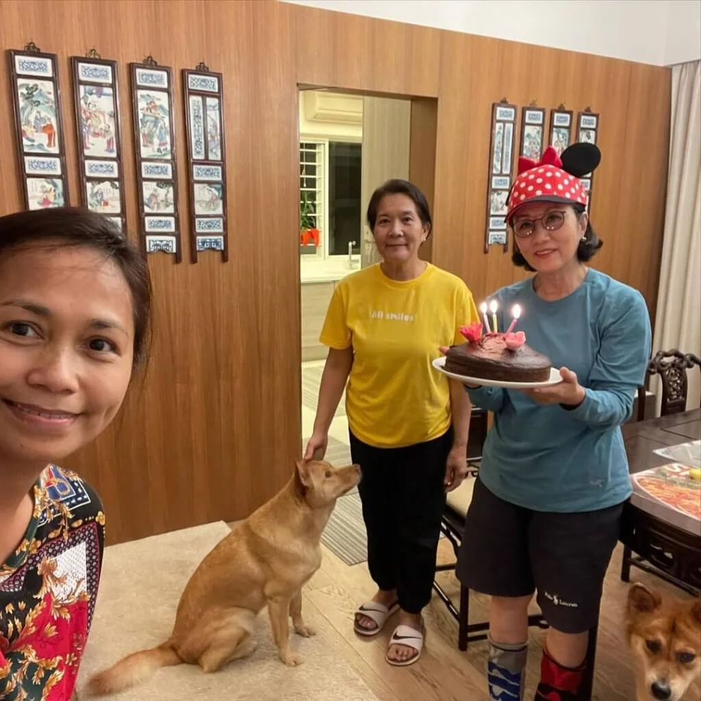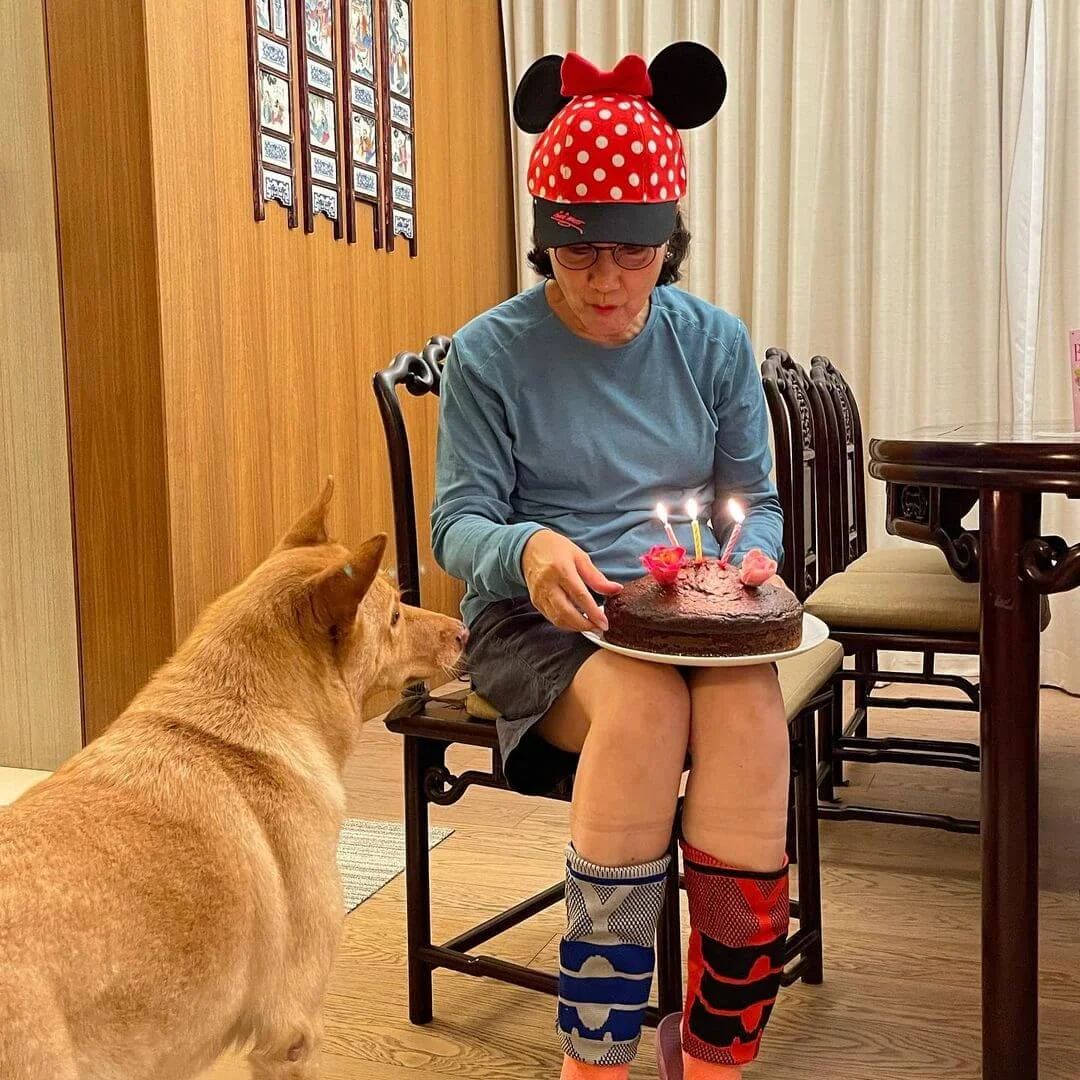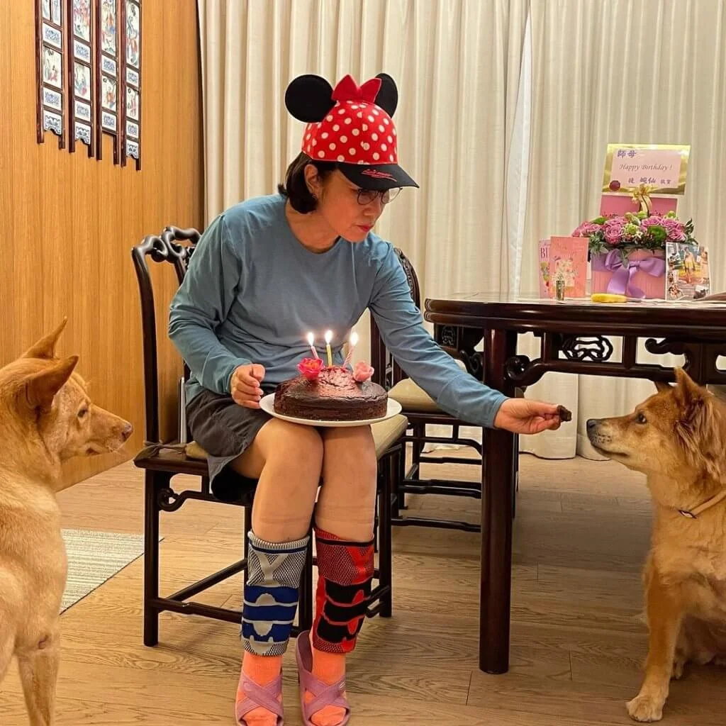 阿姐回到家中繼續收到蛋糕,慶生餘興未了,頭戴米妮款式帽子的她端着蛋糕,露出滿足的笑容,之後又與兩隻愛犬分甘同味,享受蛋糕,並透露心情:「開心的一天!」但是,有眼利的網民卻發現阿姐餵給愛犬的是朱古力蛋糕,留言提醒:「狗仔不能別朱古力蛋糕喔」、「狗食朱古力蛋糕,唔係真事啊?」