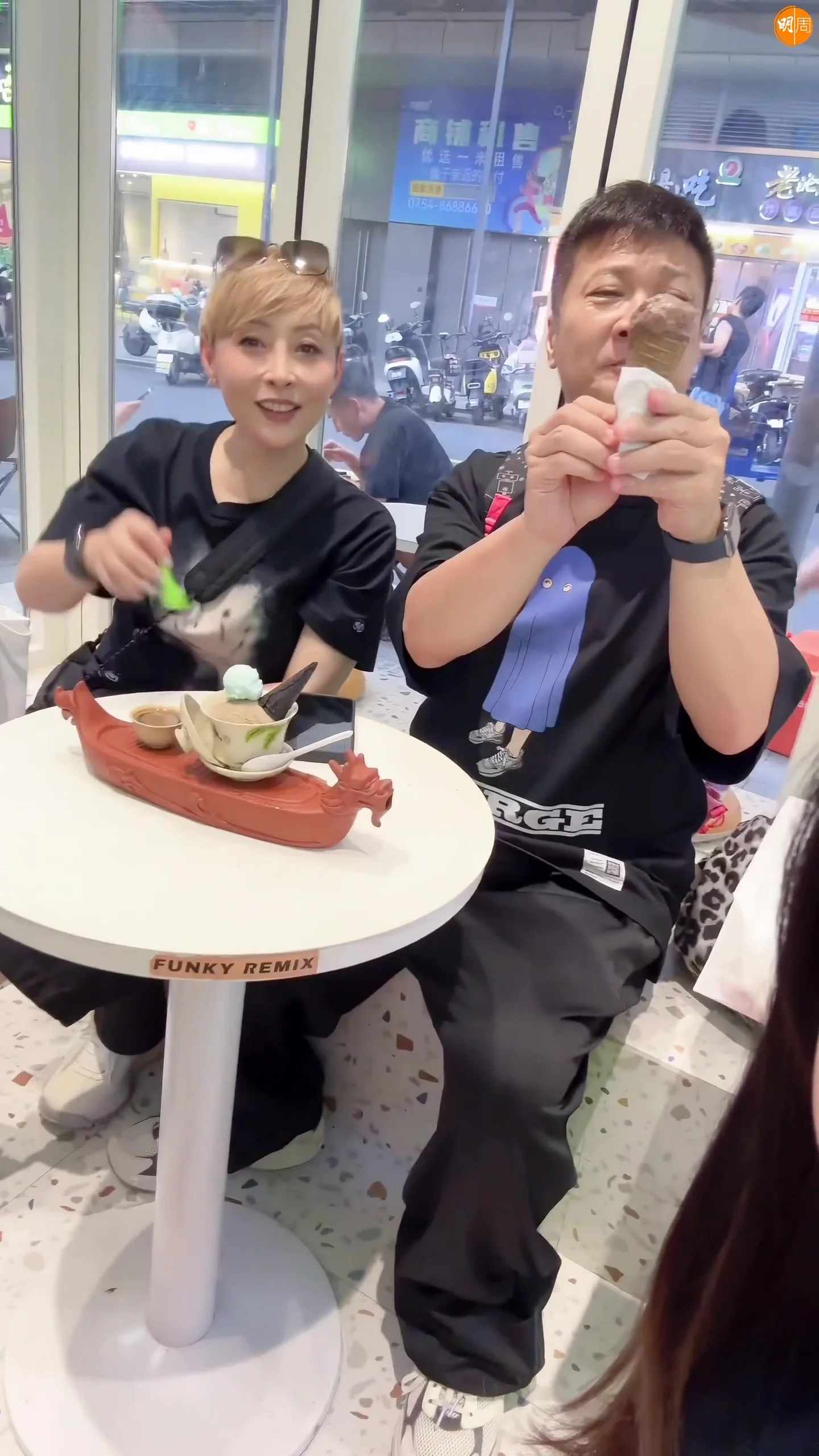 周家蔚今日在社交網上載,與老公及兒子去食美味雪糕的片段,天明親餵老婆食雪糕,同場還有好姊妹湯盈盈與老公錢嘉樂,留言:「我們很好,謝謝大家關心。」