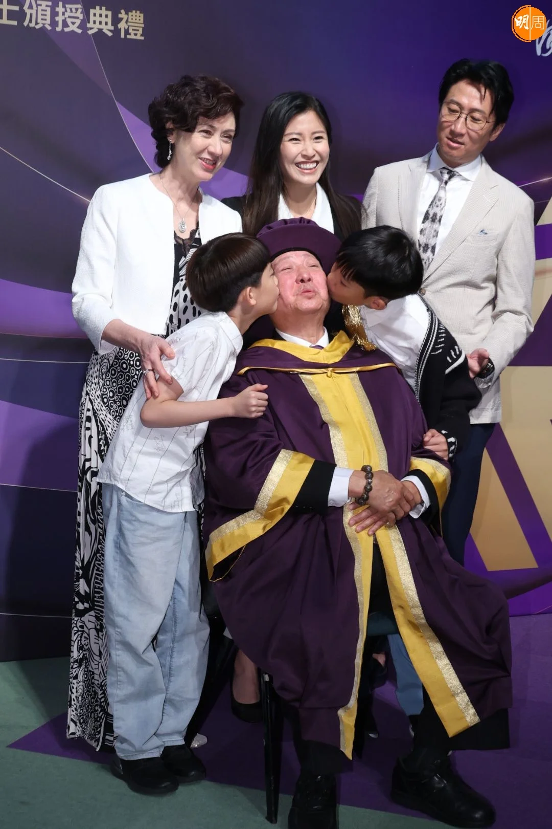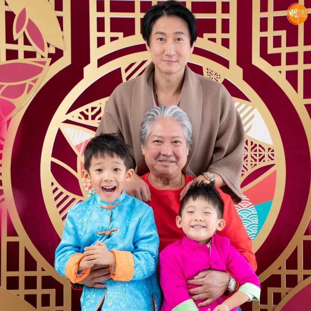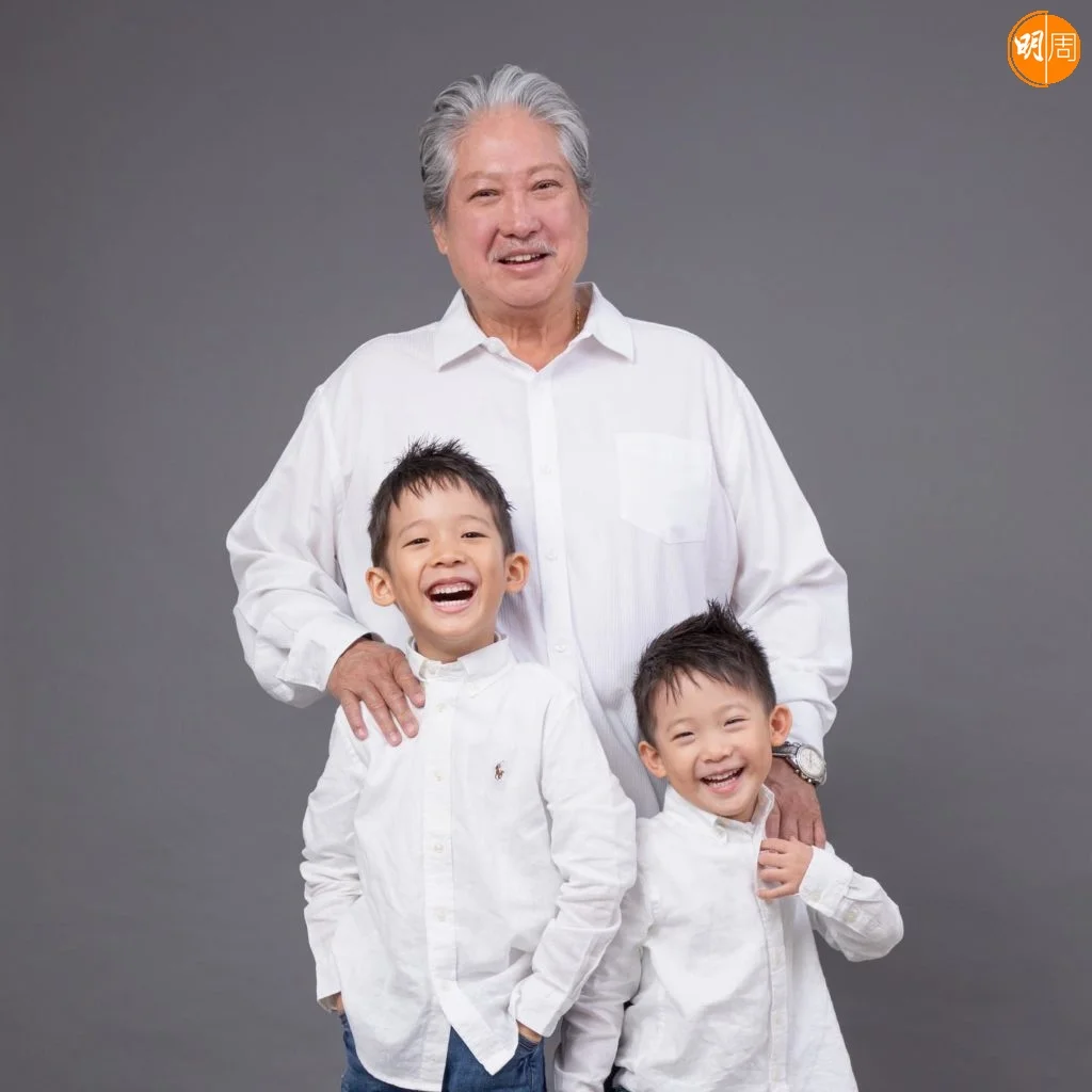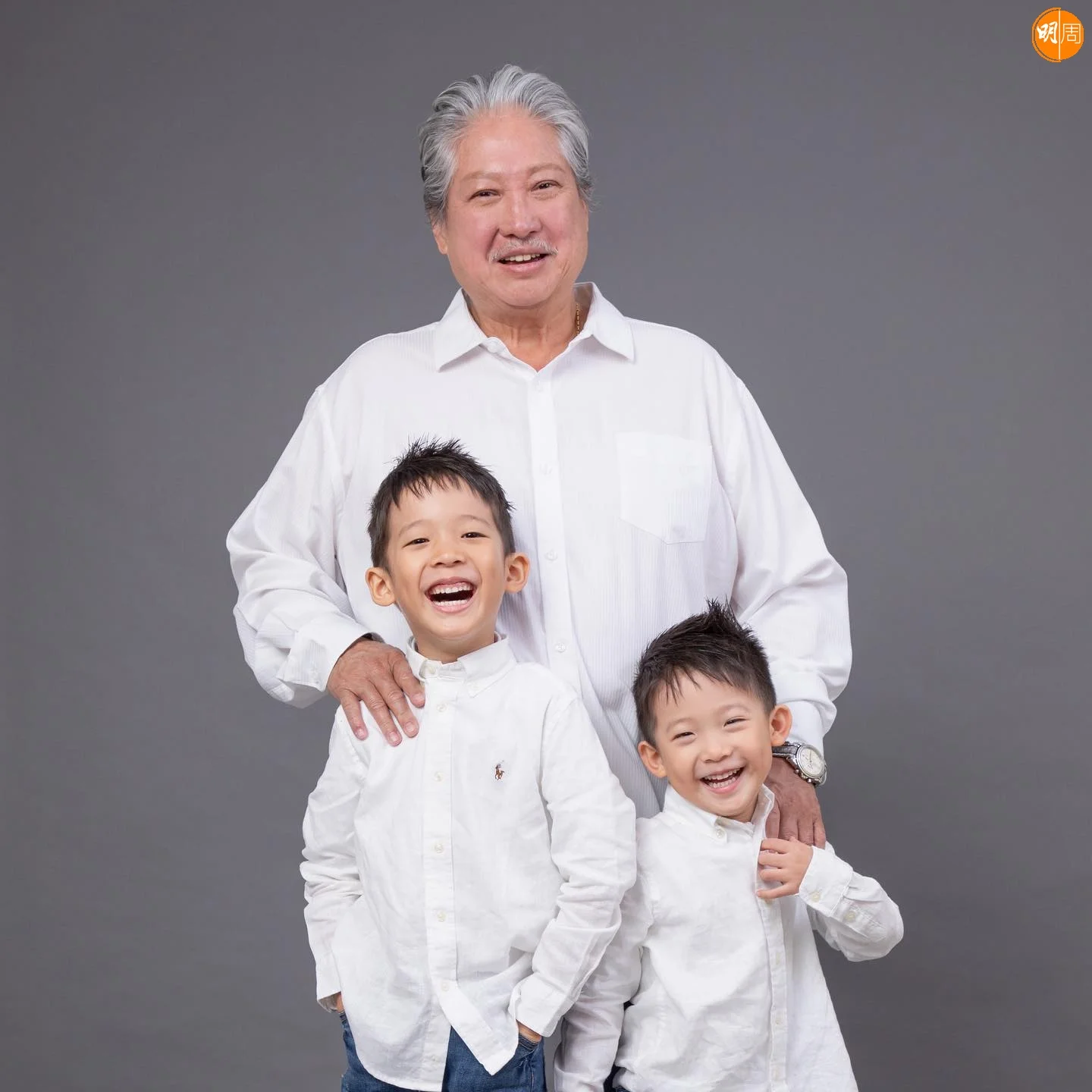 照片中3爺孫笑容溫馨自然,齊穿白恤衫及深色西裝外套。天明這2個兒子自小就跟爺爺很親,對子女嚴格的洪金寶,對着2個寶貝孫仔就是寵。上月大哥大獲香港演藝學院頒授榮譽博士,天明全家都有出席典禮支持,被2個孫仔親臉錫錫,大哥冧樣盡現,並表示給孫仔作為榜樣:「等佢哋知道爺爺幾威,佢哋要俾心機讀書。」
