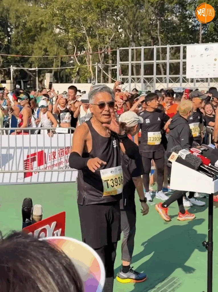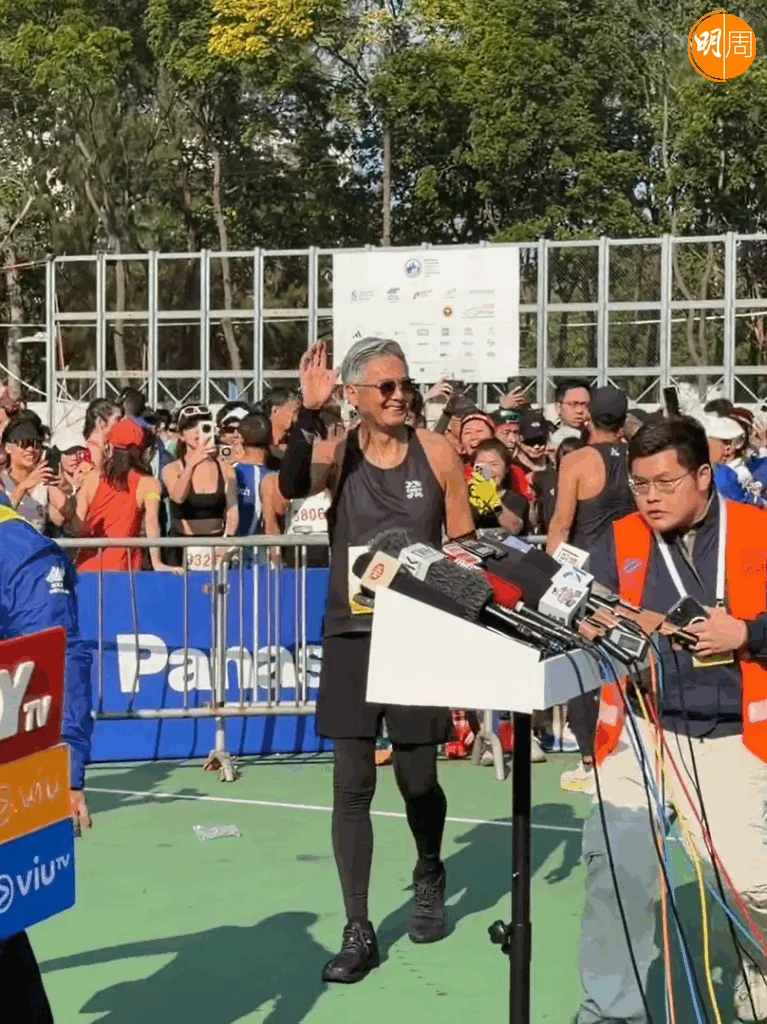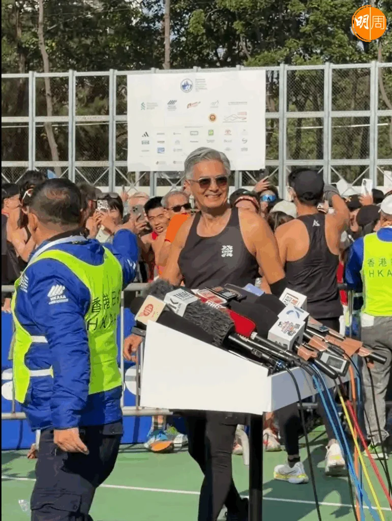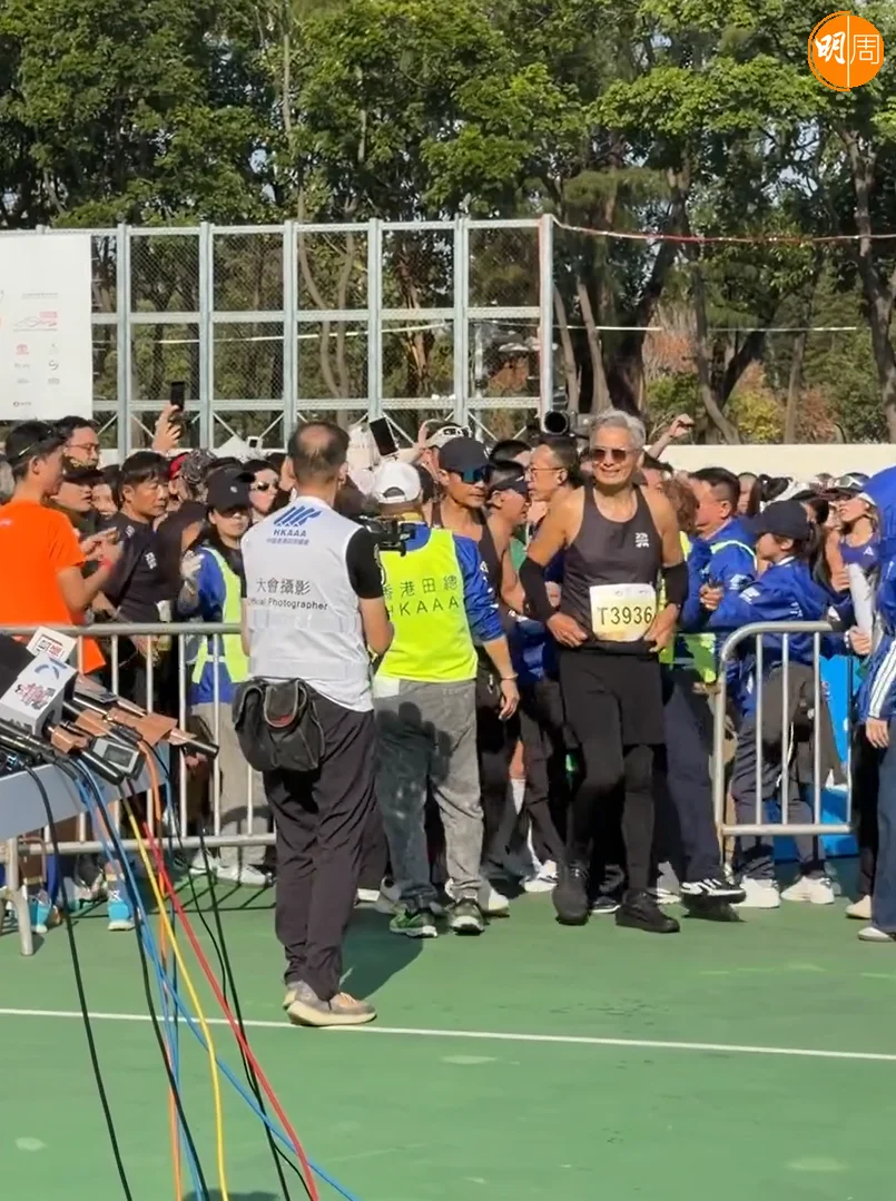 「渣打馬拉松2026」今日(18日)舉行,周潤發(發哥)再次出戰10公里賽事。他一頭銀髮配上全黑運動裝,在多位跑手簇擁中衝過終點,現場歡呼聲四起。發哥今次與跑友劉江、鮑起靜、黃翠如、蕭正楠一同完成比賽,賽後眾人接受訪問,氣氛歡快。