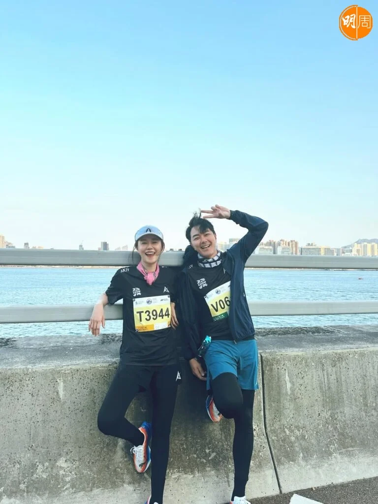 蕭正楠賽後在社交平台分享照片,除了感謝發哥領跑,還透露與老婆黃翠如一起跑才有樂趣,「為咗讓你可以完成10K,我有諗過抱住個仔喺終點等你,但係最後發現親自同你一齊跑,先至係最安心,跑步真係可以帶嚟好多快樂,以後都要一齊跑落去。」