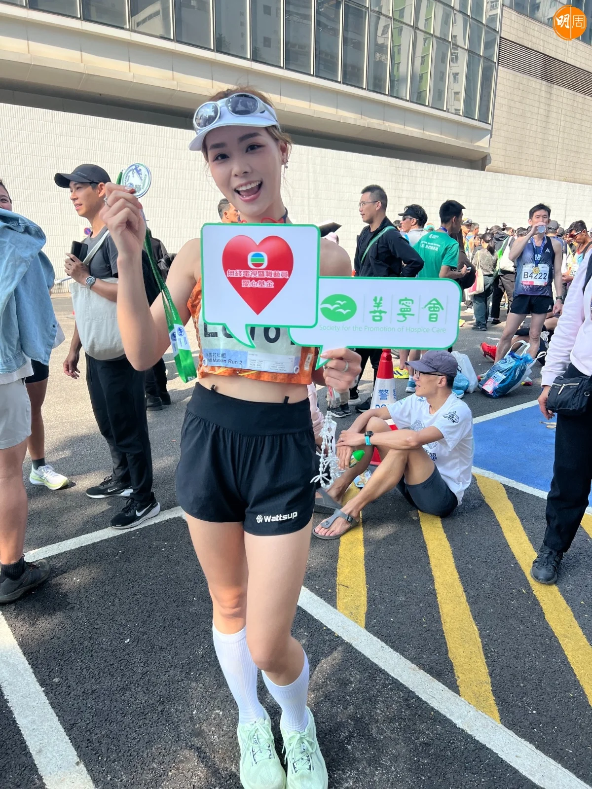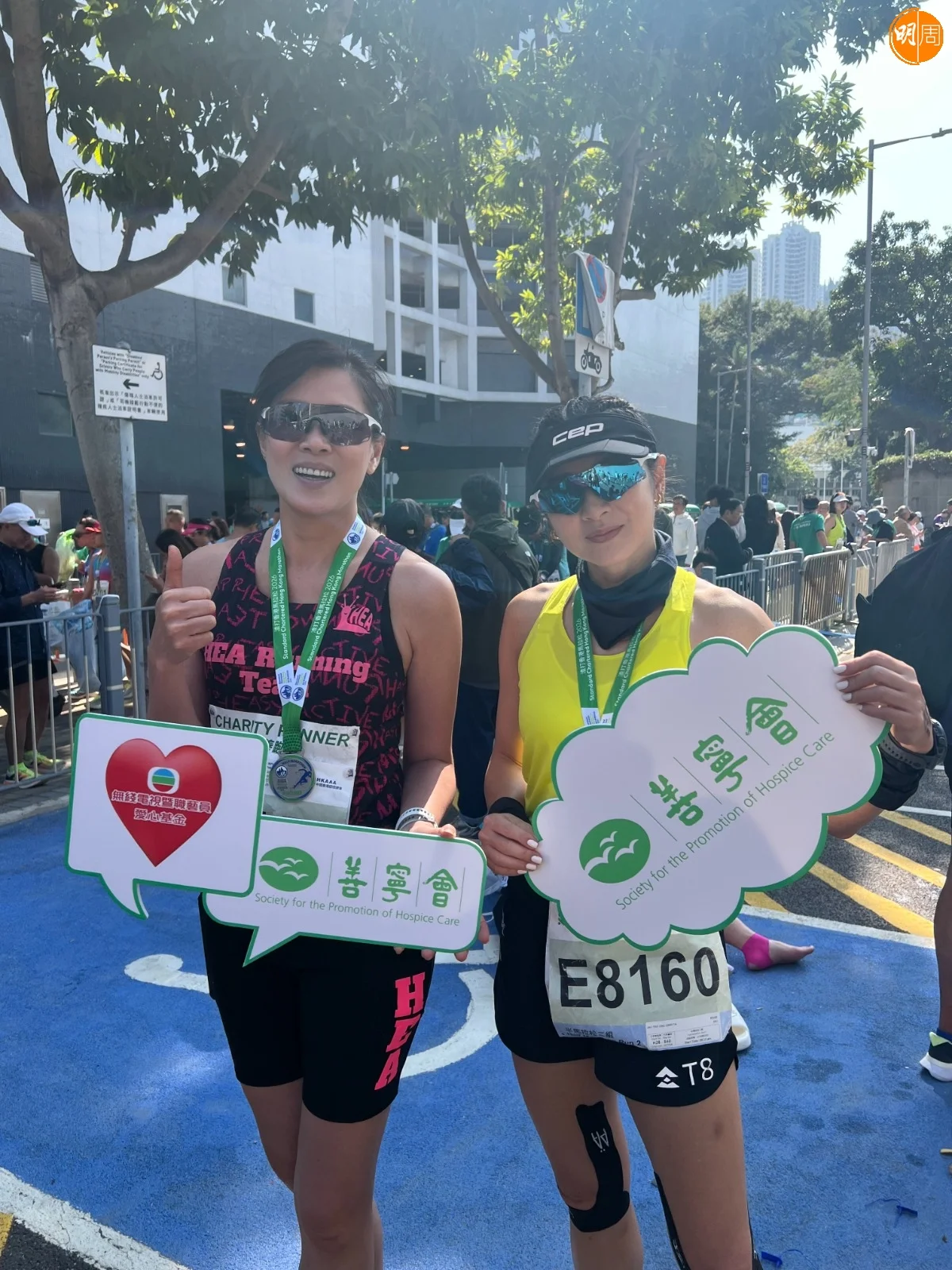 林淑敏以「TVB愛心慈善基金」參與賽事,以2小時20分完成半馬,感覺特別有推動力,沿途有不少人打氣,雖然上斜、落斜及入隧道好侷促,但過程相當熱血,所以比預期時間短完成,心情興奮,「今次為慈善跑,仲要咁多藝人同事一齊為善寧會籌款,希望之後可以組隊去探訪善寧之家。」