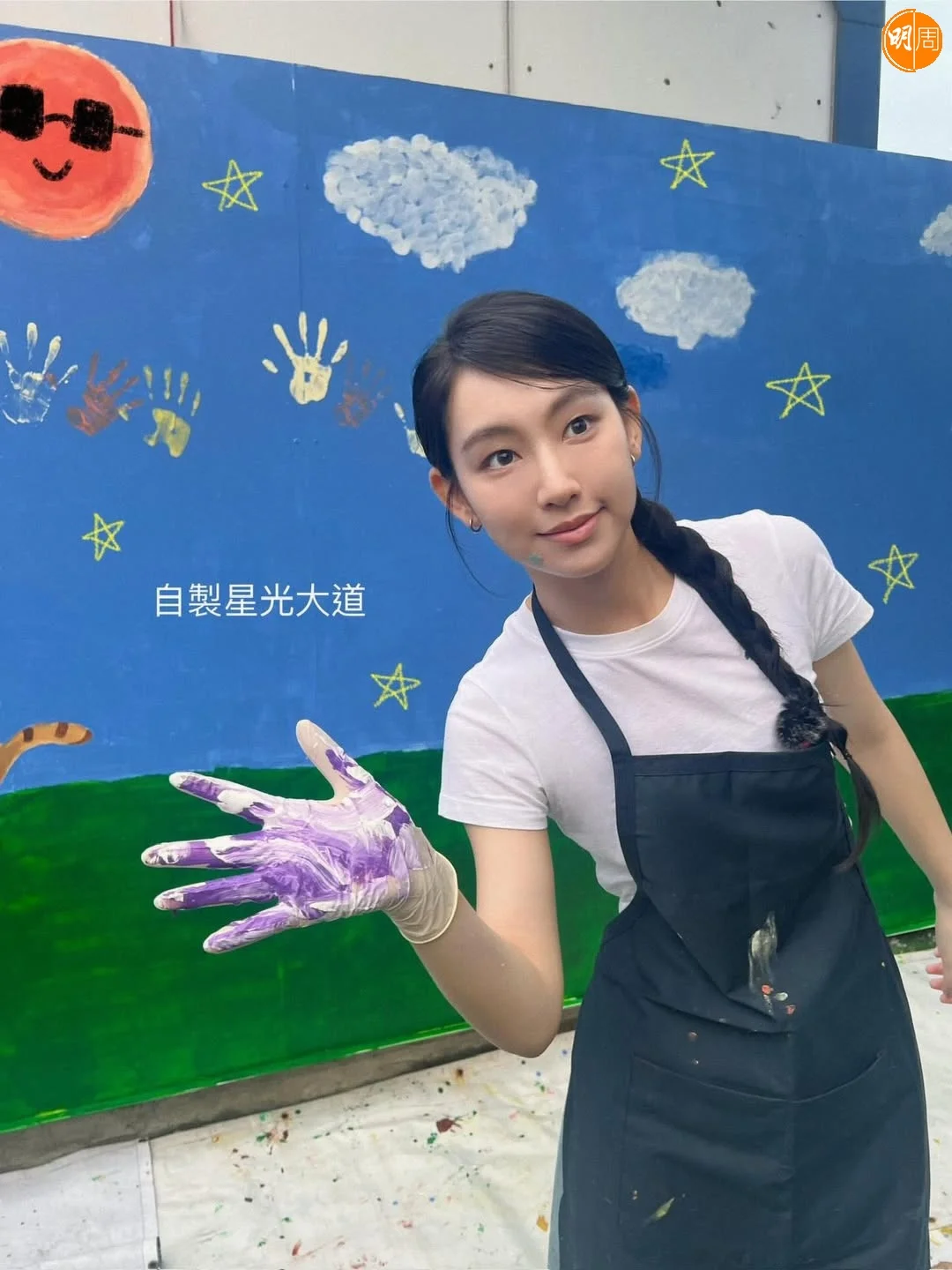 炎明熹為慈善狗舍畫壁畫  簡約Look紮起辮仔好清新