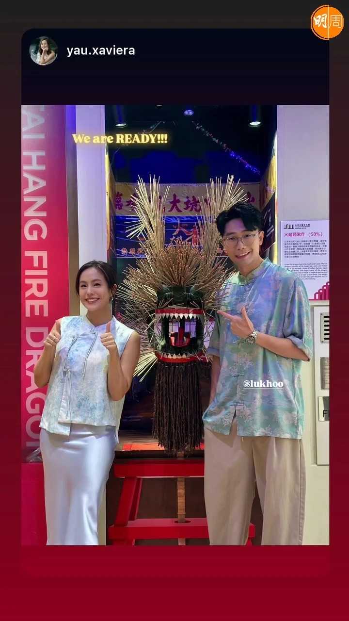 炎明熹(Gigi)約滿無綫回復自由身並宣布自組工作室後,昨晚(5日)獲「大坑舞火龍」大會邀請,到場舞小火龍及主持拜神儀式;完成儀式後,Gigi返回所屬隊伍,聽從工作人員指示舞龍珠。Gigi事後在ig限時動態,分享今次參加舞火龍的花絮照與片段,留言:「榮幸,感謝!非常感謝。」Gigi還祝大家「中秋節快樂、人月兩團圓、快樂食湯圓」。