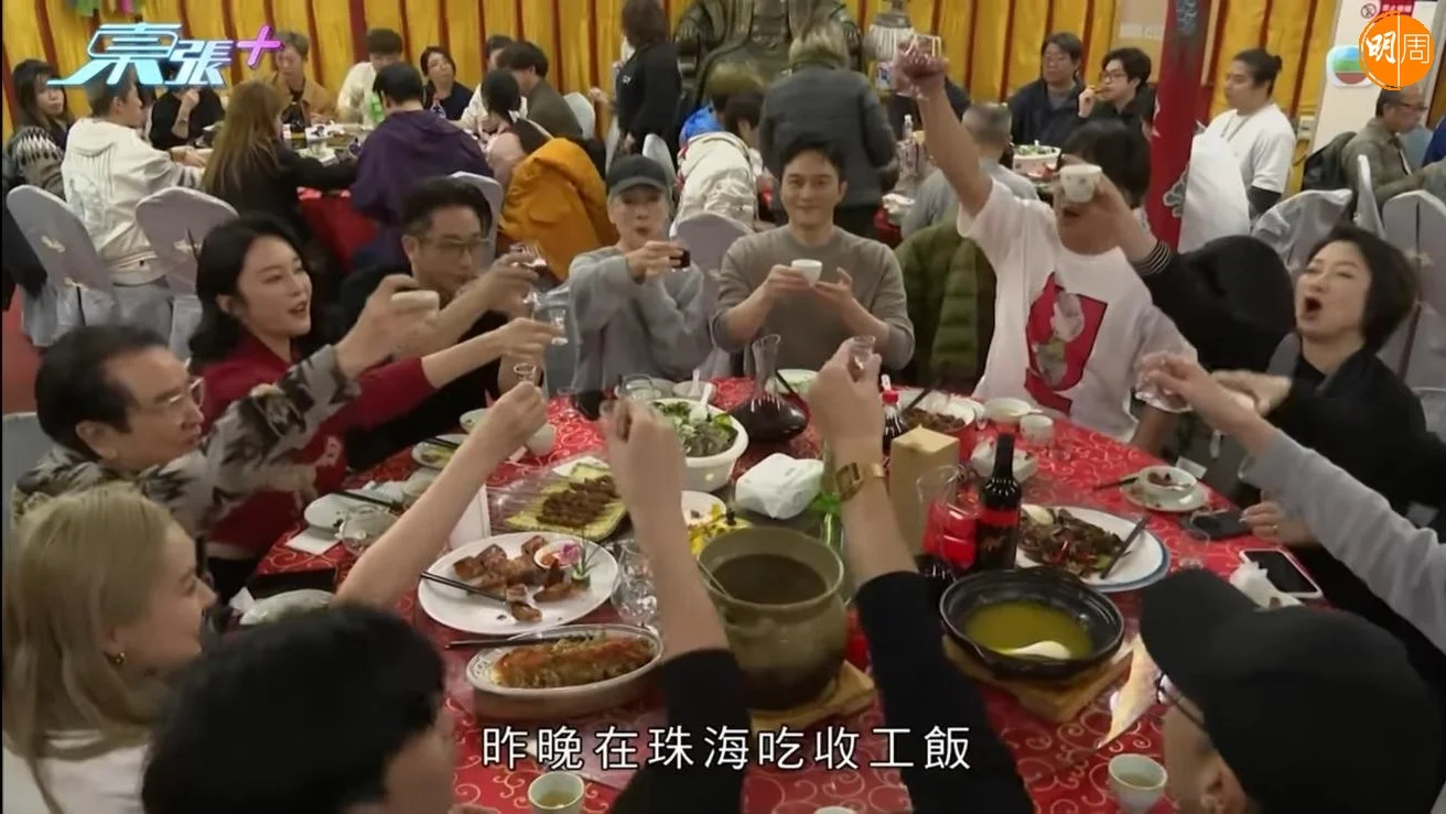 無綫劇集《璀璨之城》日前在珠海完成拍攝後,兩位女主角高海寧(高Ling)和張曦雯在當地請食煞科宴,並聯同張智霖(Chilam)、吳卓羲(Ron)、姜大衛(John哥)拎錢出來給大家抽獎,Ron負責頒獎外,又與得獎者唱歌,包括他的《別怪她》,現場氣氛高漲。