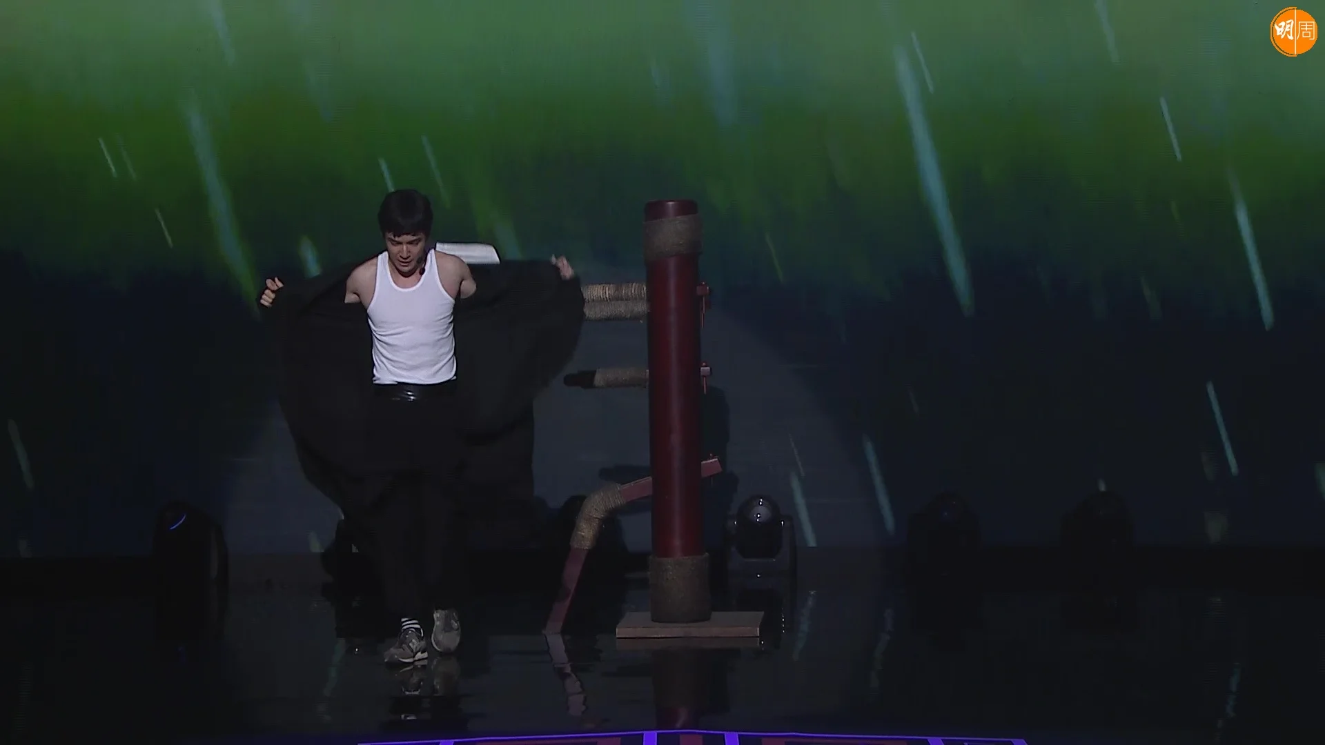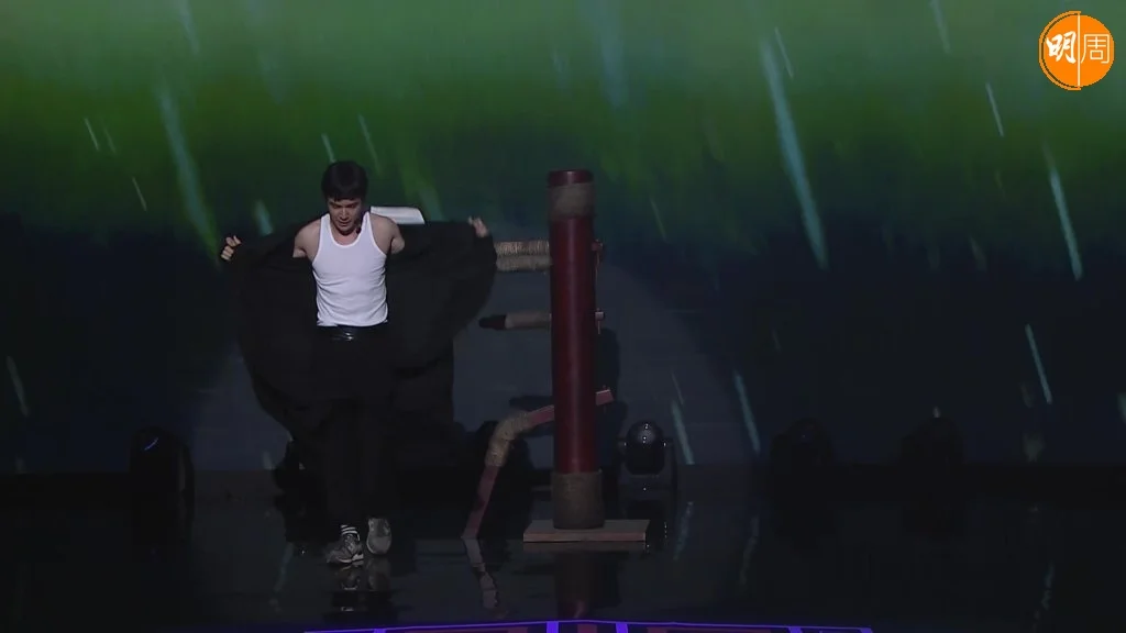 耍棍期間,Alan麒麟臂爆出來的青筋、以及「超級老鼠」仔亦相當搶眼球。玩完雙節棍,Alan狂野地撕爛背心,晒出強勁胸肌及超結實且線條分別的朱古力腹肌,大晒「踢腿神功」及「鐵拳功」,表演「花式踢板」,令專業評審江美儀睇到「眼都凸埋」。Alan最後以一招「後空翻」完結表演,不過卻發生小意外膝頭先落地,嚇至全場鴉雀無聲。不過全程全神貫注欣賞Alan演出的美儀姐,遭阮兆祥取笑要抹口水,美儀姐亦難掩興奮表情激情十足謂:「排朱古力好正呀!」