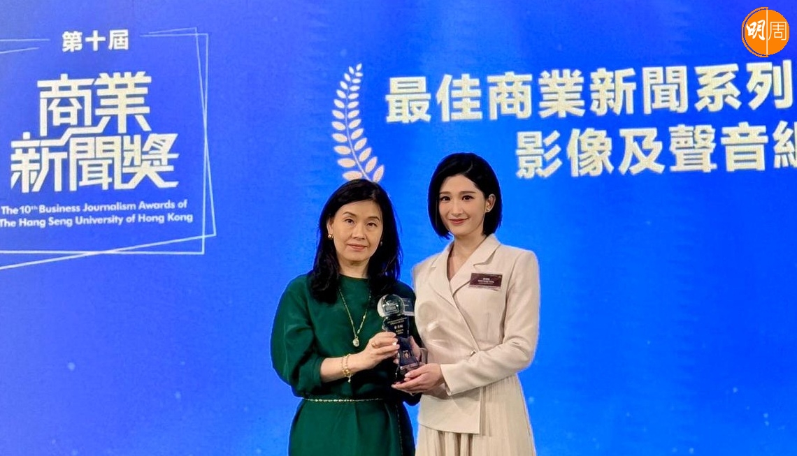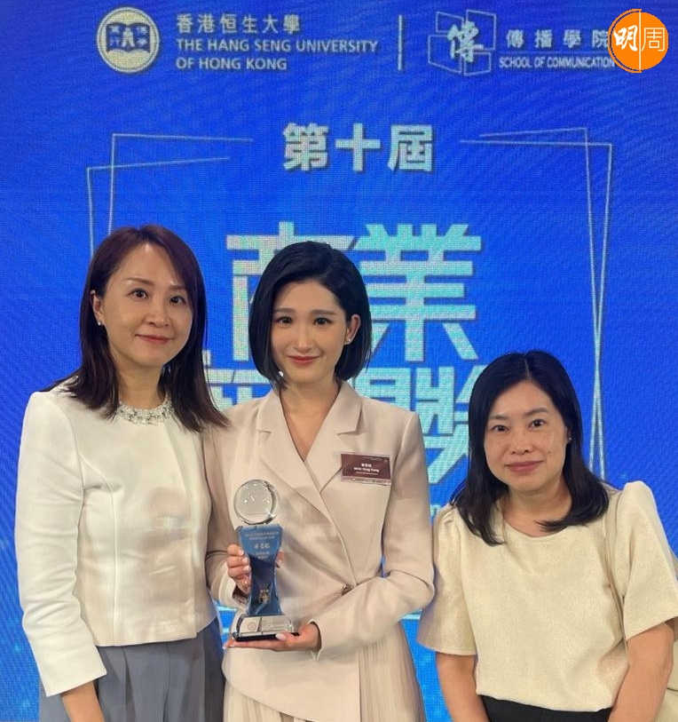 新聞主播麥景榕(右)獲頒恒生大學商業新聞獎金獎
