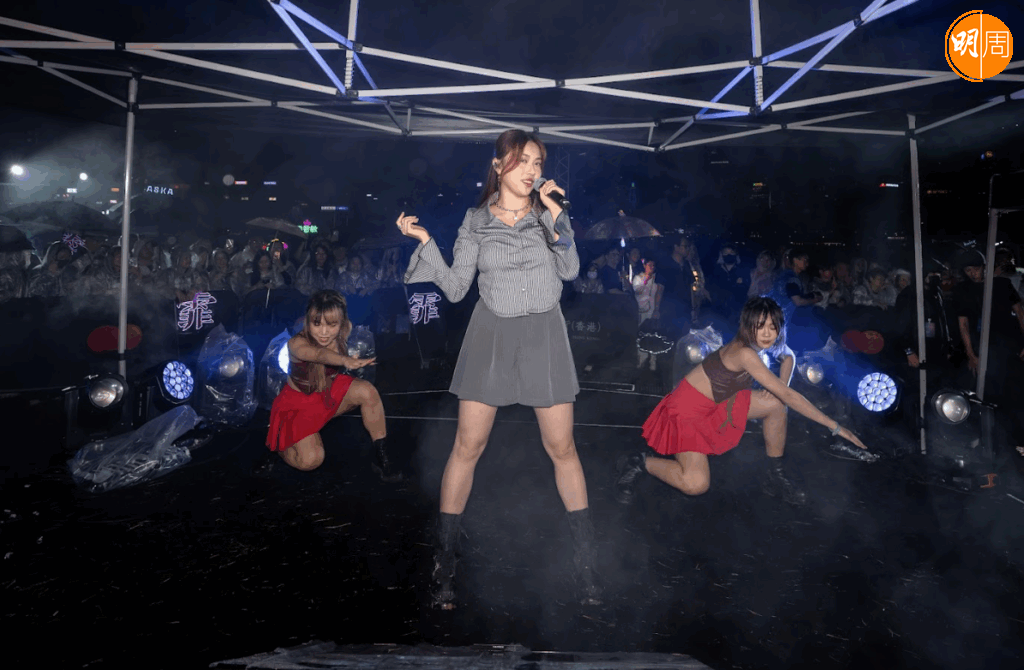 《聲秀》代表Emily 周智敏、Ziva 穎喬及 Ophelia 柯雨霏勁歌熱舞出場,Fans 歡呼聲不絕 。周智敏短裙上陣,不時跳出火辣舞步令全場氣氛升溫,翻唱容祖兒金曲《隆重登場》 !而 Ziva 穎喬都非常性感,性感高叉露腰裝束非常養眼,型格戴太陽眼鏡跳舞:「大家 so far 睇得開唔開心?我今日又係跳《Taxi》,我跳到好熱啊,見到你哋着晒雨褸都嚟支持我哋,真係好多謝你哋,大家要保暖唔好凍親,近排好多人病,你哋一定要保暖!」而 Ophelia 柯雨霏則小背心上陣,非常青春可人,她非常心疼 Fans 淋雨支持自己,所以非常識做走近 Fans 收花 !