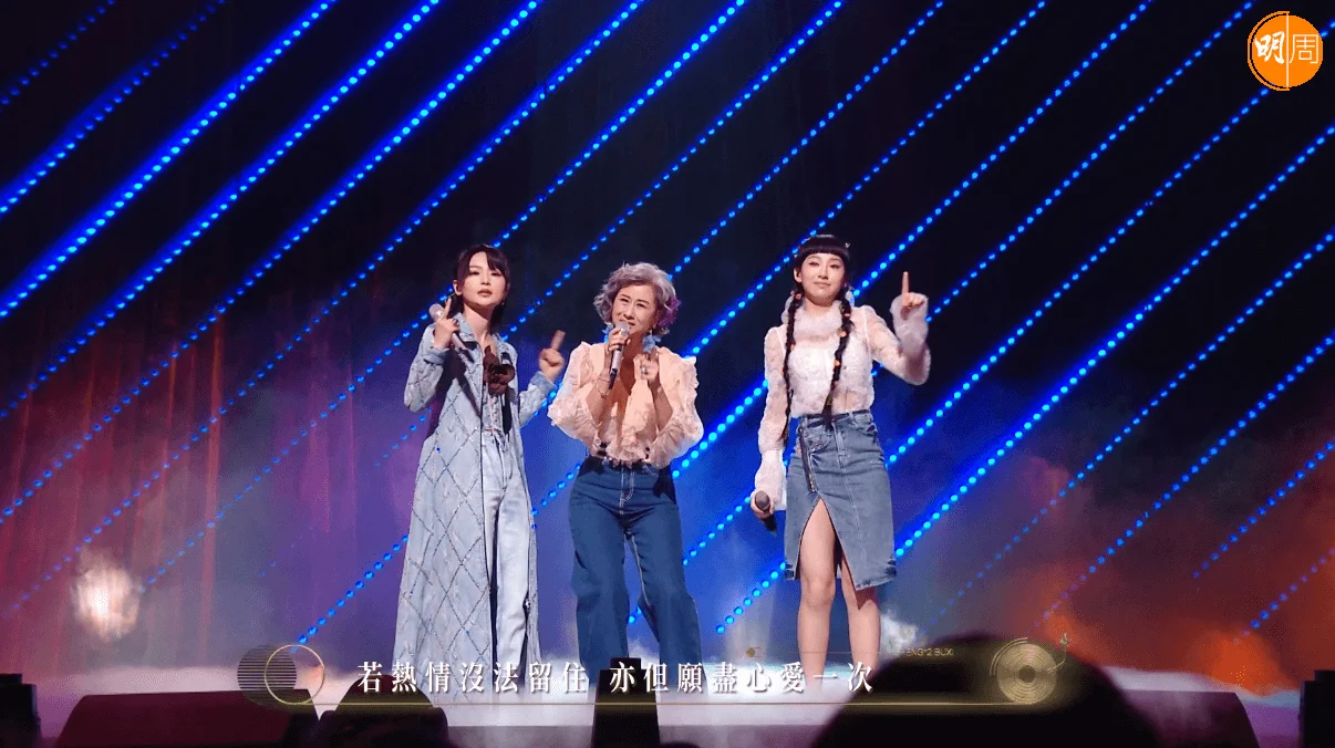 另外,葉蒨文(Sally)、周筆暢(筆筆)及炎明熹(Gigi)首度攜手合唱,主持王祖藍相當興奮,並向着之前與BB及依純合唱《高山低谷》的千嬅表示:「這個才是真三代,你那個是兩代半。」千嬅聽後哭笑不得。為隆重其事,Gigi、Sally及筆筆在造型方面特別配搭,均是花漾配牛仔風格,凸顯「三代同心」。Sally出場前透露《談情》原是獨唱版本,但因有人提議她跟鄭秀文合唱,Sally也因想嘗試Duet欣然答應。Sally邊說邊興奮說:「希望第二日有機會可以同Sammi一齊唱。」說畢更指向Gigi:「你到時做演唱會加埋我哋啦!」受寵若驚的Gigi一度目瞪口呆及坐不穩,場面搞笑。