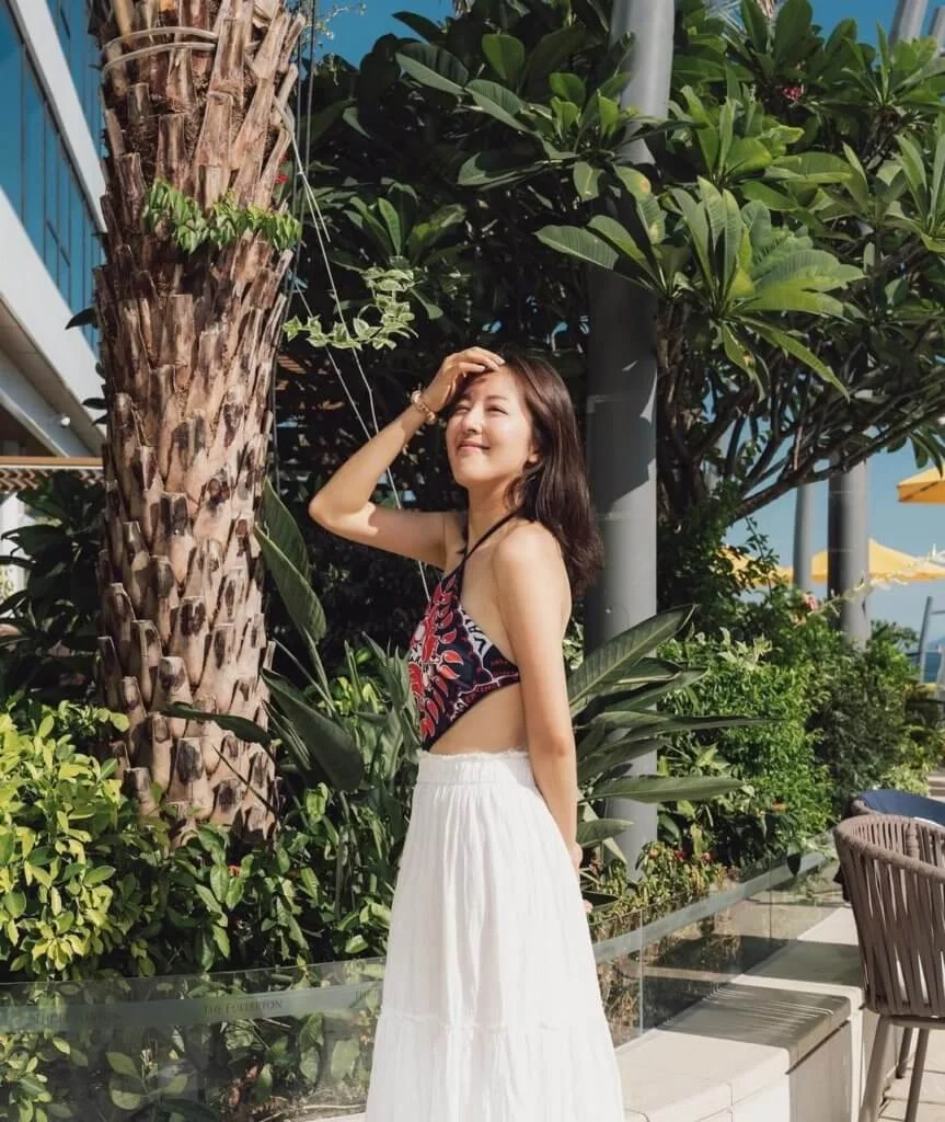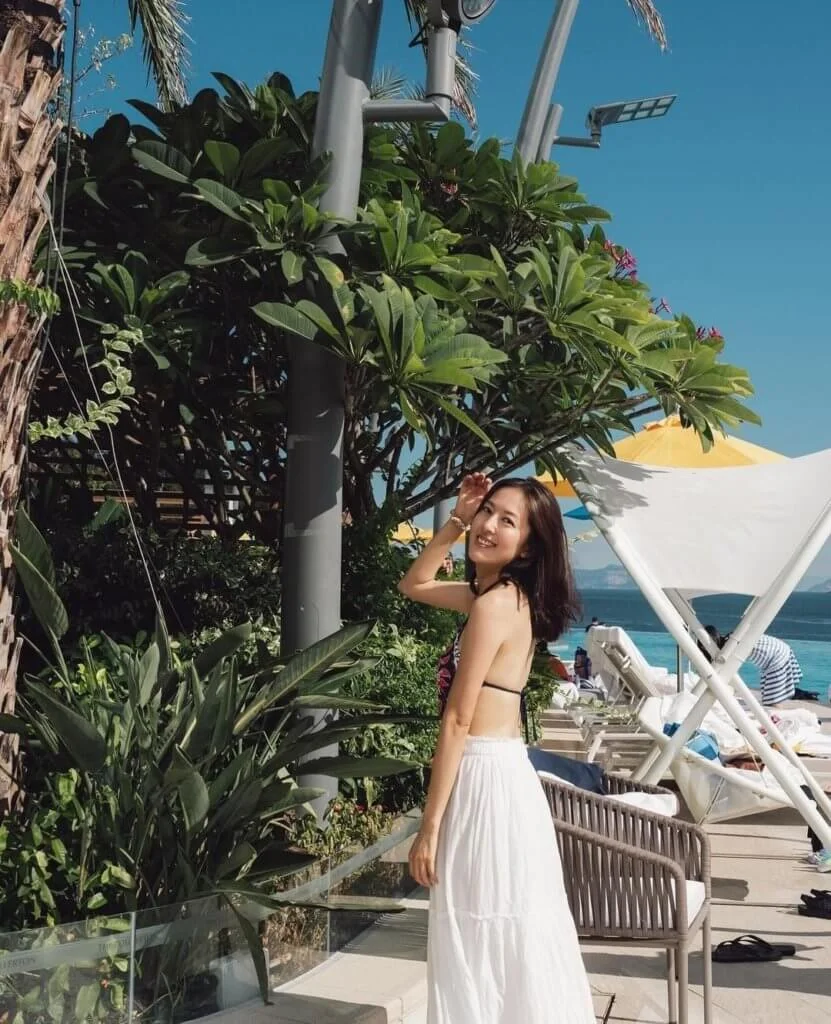四十一歲的唐詩詠(Natalie)月前約滿無綫,結束近廿年的賓主關係,目前放假的她,除了相約好姊妹黃翠如四出遊玩外,她更飛往日本旅行,日前她於社交平台上載穿上肚兜泳衣的照片,並留言寫道:「 捉緊夏天的尾巴!」相片中見她倚着一望無際的泳池邊,加上藍天白雲十分寫意,其後她又坐在池邊的太陽椅上,擺出誘人甫士,大曬白滑香肩兼長腿,引死一班網民留言大讚靚人靚景。