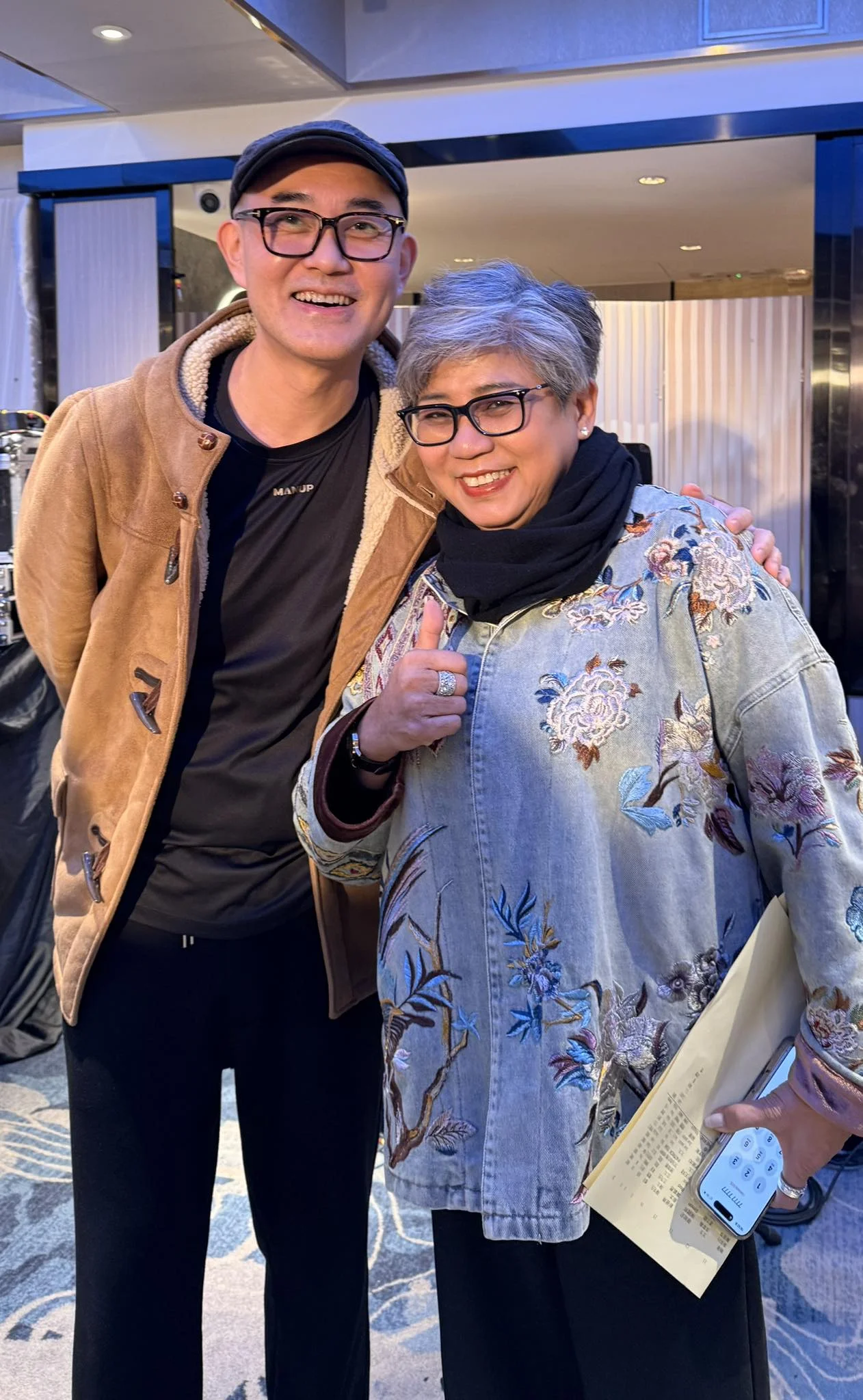 周國豐日前出席黑妹李麗霞的65歲生日宴,他在社交網分別曬出與壽星女黑妹姐、胡楓(修哥)和陳國邦在會上的合照。擔任《中年好聲音》評審獲封「手緊王」的的周國豐,當日與修哥的合照,配文表示當向修哥提出合影時,修哥卻謂:「你成日唔俾燈,我要考慮一個鐘先啦!」不單一眾網民大讚修哥夠幽默,就連余安安都留言:「修哥真係超醒」。