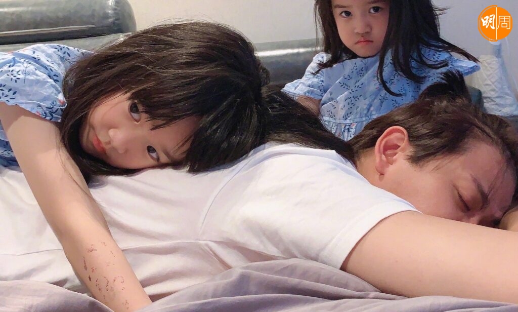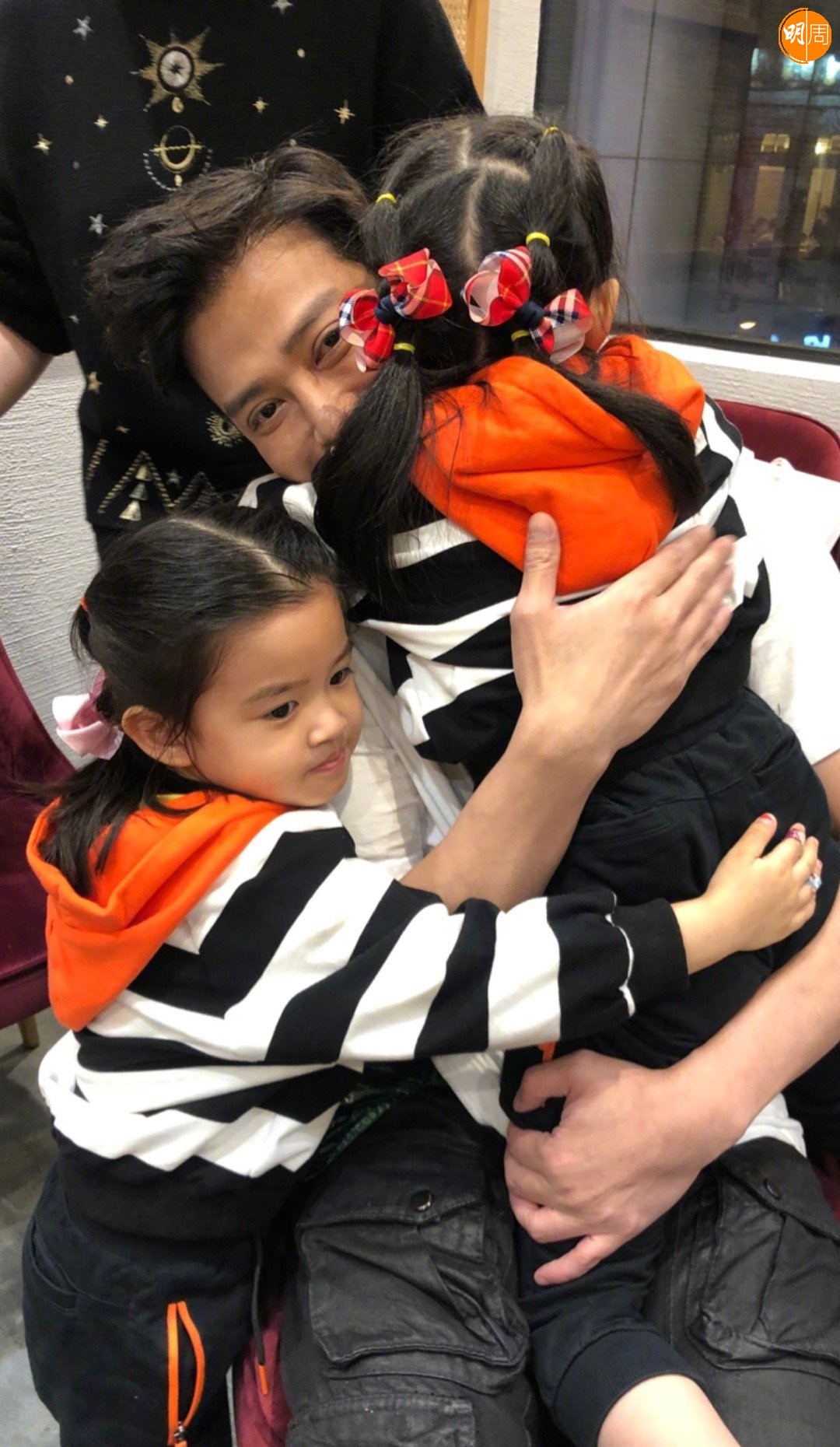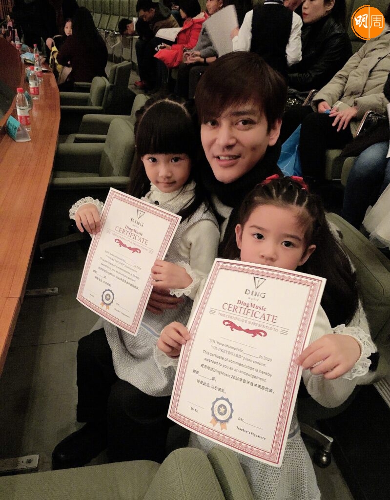 兩人的大女兒朶朶十一歲,小女兒多多十歲,他形容兩個女兒是「一斤棉花一斤鐵」,大女兒嬌柔聰明但會偷懶,小女兒肌肉結實強壯,學習態度認真卻膽小,兩個女兒性格各異,教導時的方式也不同,要針對她們的天性對症下藥,「我感覺和兩個女兒一齊成長,做爸爸對我有很多正面影響,以前只考慮自己的需要,現在會先考慮太太和兩個女兒,日常生活不論待人處事,還是工作方面唱歌、演戲,都希望成為女兒們的榜樣,甚至連開車也慢下來,不像以前那麼衝動。」