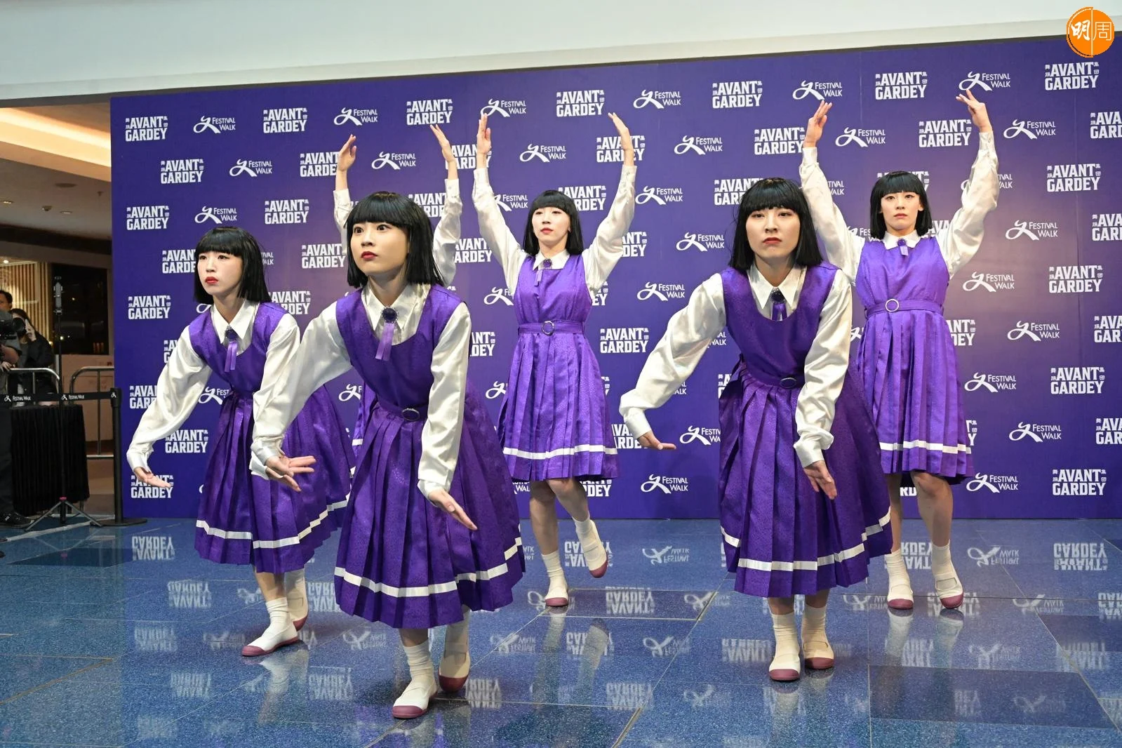 日本女子舞蹈團AVANTGARDEY 海外首個期間限定店今日(5日)在香港開張,其中六位成員來港宣傳,即席以《今期流行》、《打雀英雄傳》及一首日本歌表演舞步。為演繹《今期流行》的拜神動作,花了超過一日去練習,預告7月在機場博覽館的演出,會揀選一些廣東歌作限定演出。被問到想與哪位香港明星合作?她們立即擺出不同的舞功架式表示想與周星馳合作,因為睇了好多星爺的電影,有好多舞步也是參考他的電影來設計。