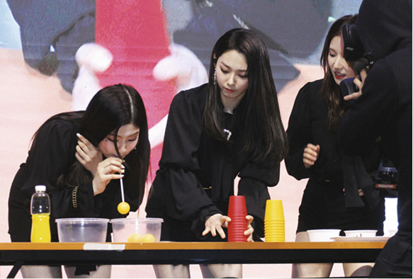 難得來到香港,當晚她們就分別以「唔鹹唔淡」的廣東話自我介紹和跟粉絲溝通,「好開心見到大家」、「多謝大家來到這裏」、「今日玩得開心點」、「你們是最好的」,氹得台下的「Dear Friends」非常開心。雖然這次是粉絲見面會,不過粉絲可以親近偶像的機會其實並不多,遊戲環節也只是成員之間的活動,不過一樣令粉絲看得盡興,除了畫畫挑戰畫功,其中很會撒嬌的成員美娜還被成員安排跟大六歲的隊長MIMI鬥可愛,場面足以令現場的男粉絲暴動!
