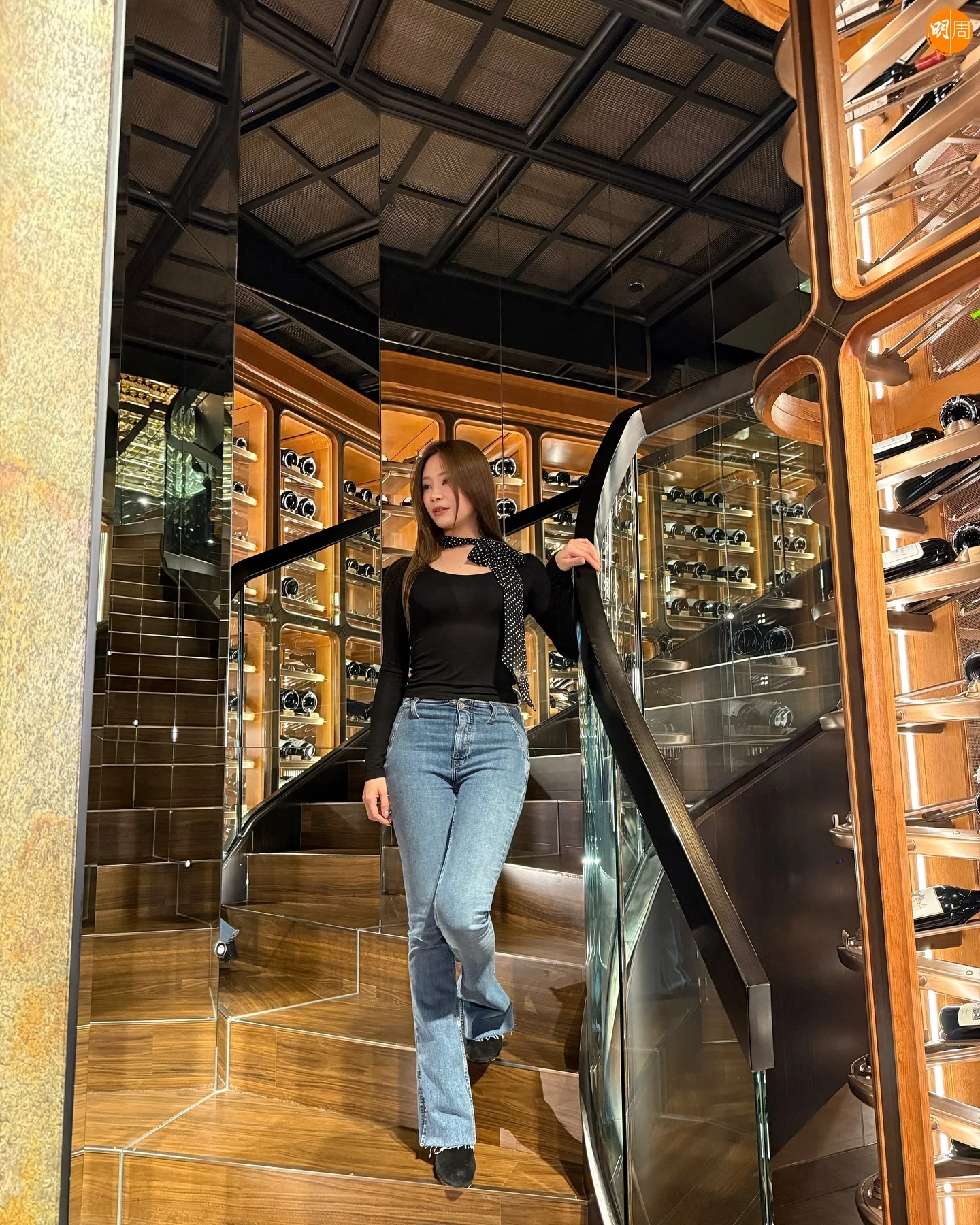 《愛回家》小花葉蒨文(Sophie)不時在社交網曬美照獲讚樣靚身材正,昨日(3日)她在社交網分享到餐廳享美食,於現場著名巨型酒窖樓梯設計打卡。雖然今次Sophie打扮簡約,只穿黑色貼身上衣配牛仔褲,但有靚樣和甫士搭夠,依然獲大批網民讚好。